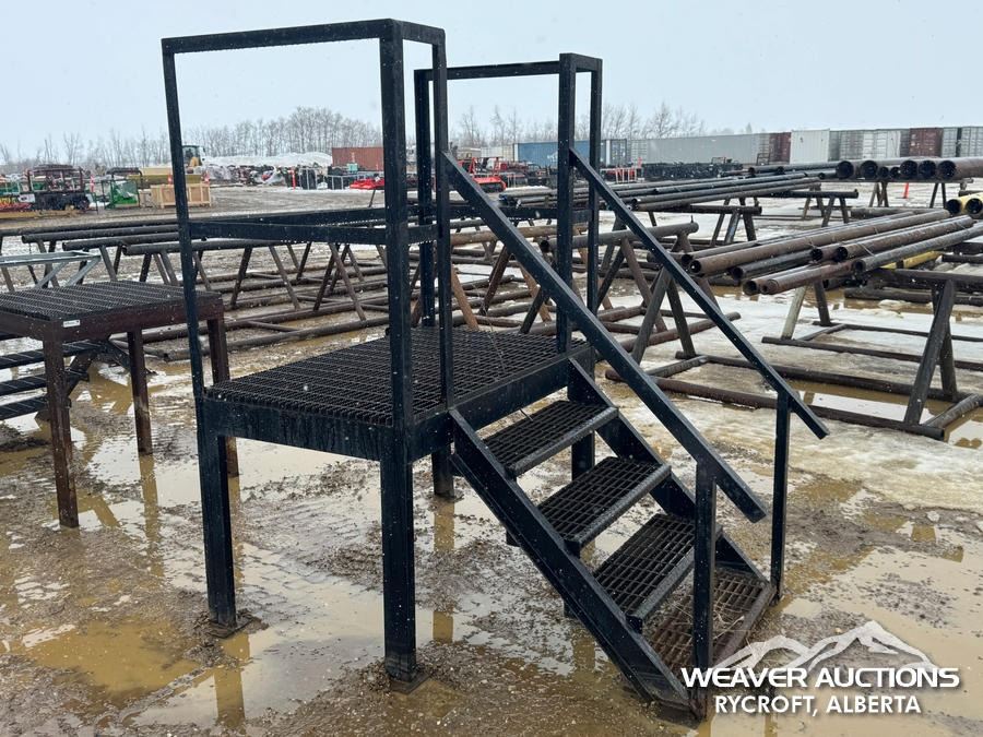 Lot 1154 3 FT. X 5 FT. STEEL PLATFORM STAIRS WITH HAND RAIL