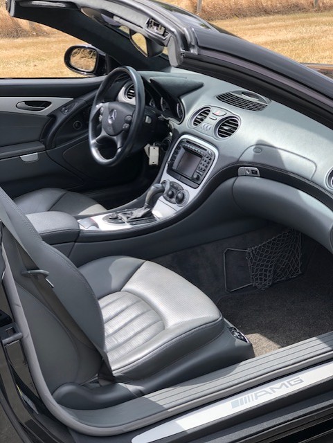 2003 Mercedes SL55 AMG in excellent condition. Powered by a 5.4-liter supercharged V8 engine producing impressive performance and smooth power through an automatic transmission. This AMG roadster combines luxury and performance with its power V8 8-cylinder engine, sport-tuned suspension, and a retractable hardtop convertible for open-air driving at the push of a button. A true high-performance luxury convertible that still turns heads.