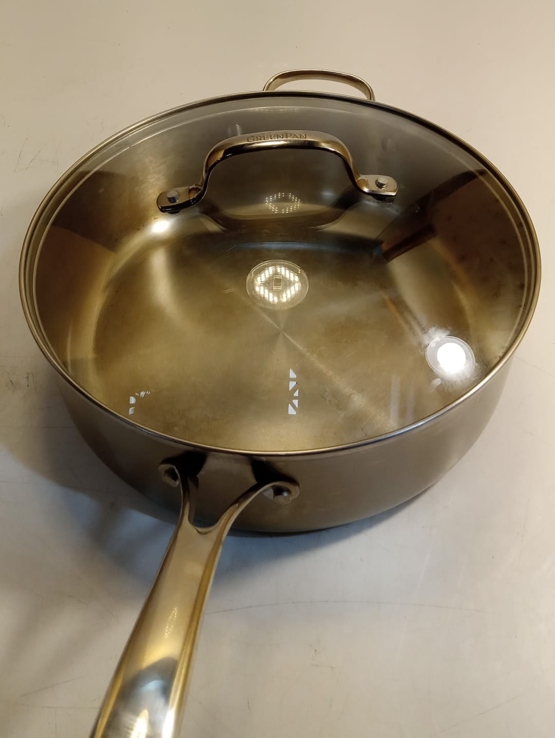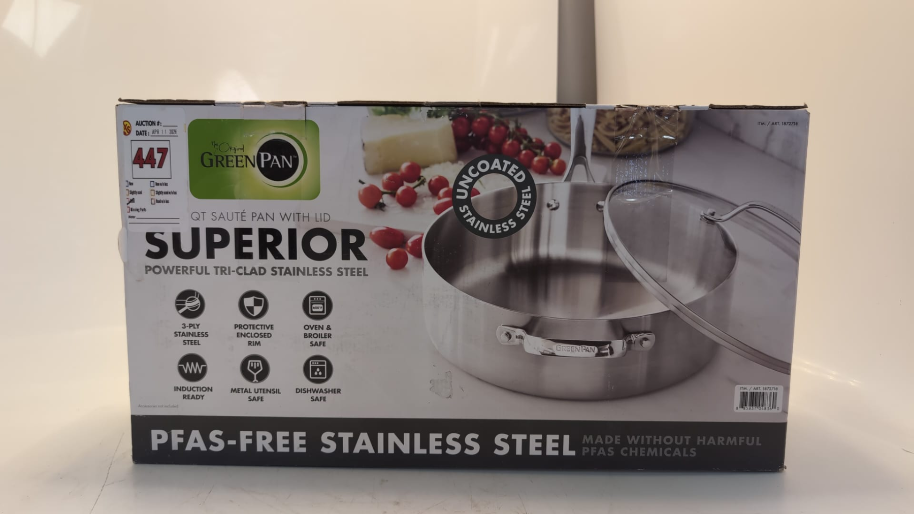 Lot 447 GREENPAN TRI-CLAD STAINLESS STEEL COVERED SAUTE PAN -U