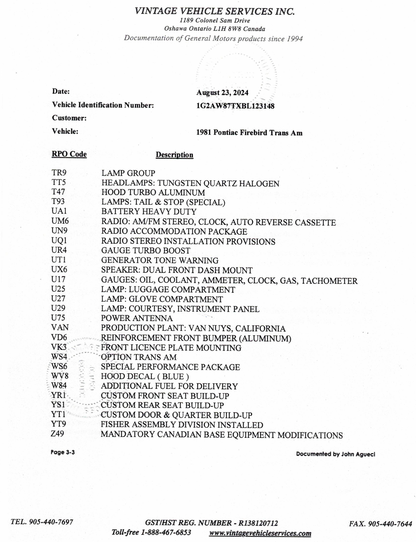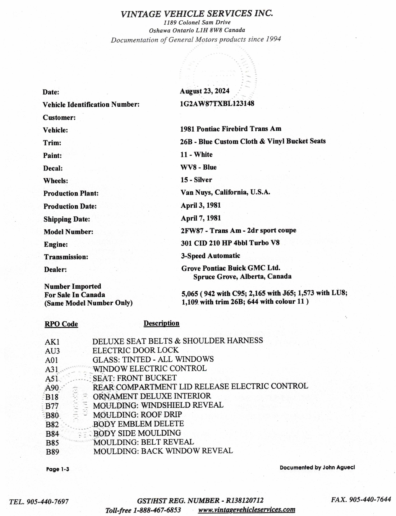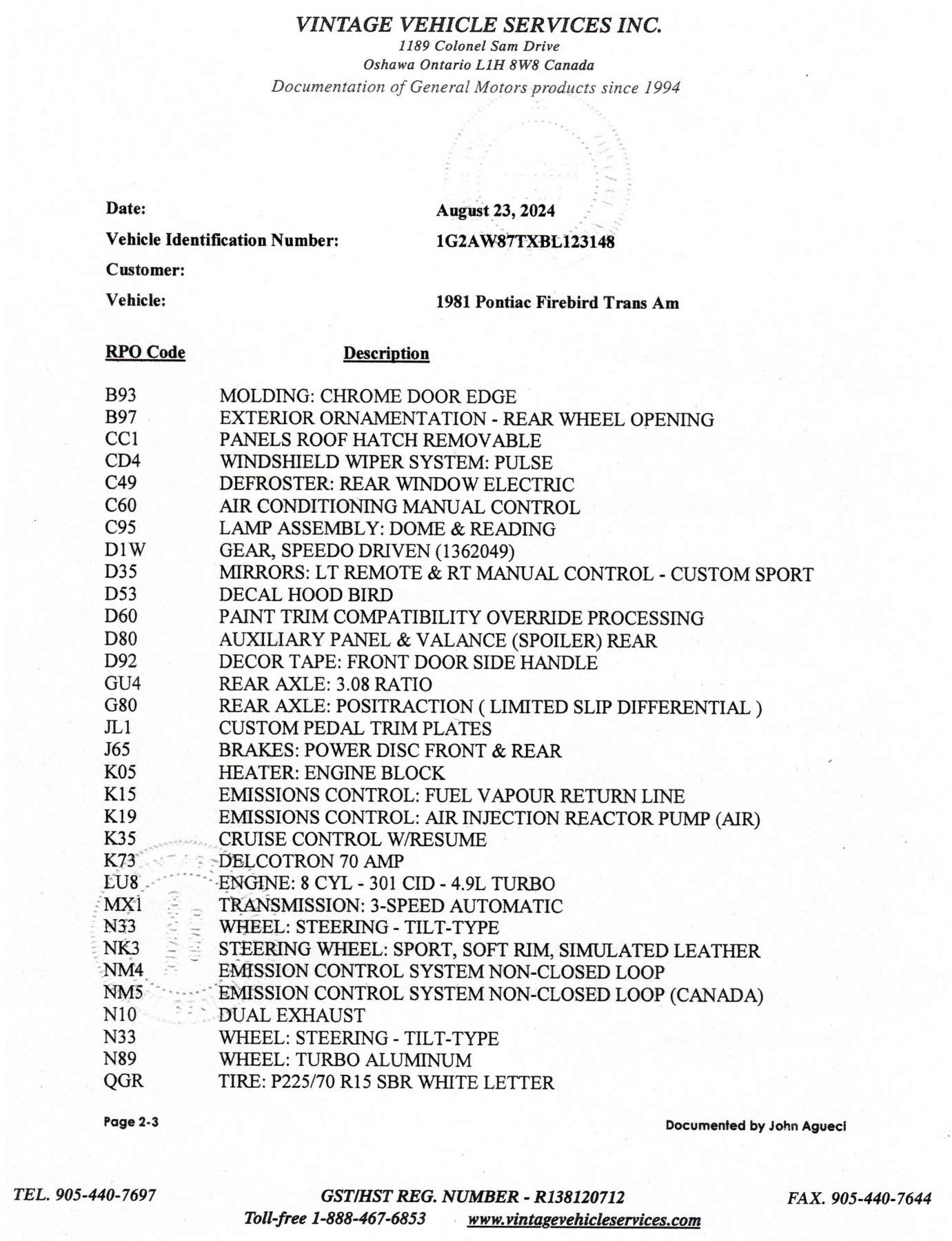 Lot 164 1981 PONTIAC TRANS AM TURBO