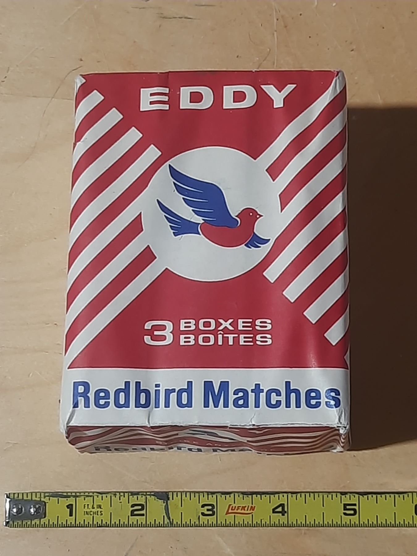 Vintage pack of Eddy Redbird Matches produced by the Eddy Match Company, a prominent Canadian manufacturer.