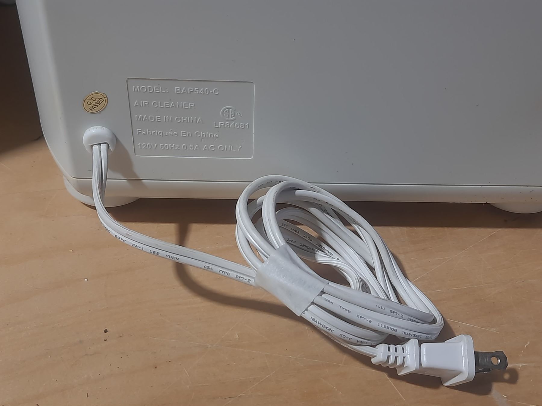 Bionaire air purifier, designed to improve indoor air quality by removing airborne particulates and odors. (Untested)