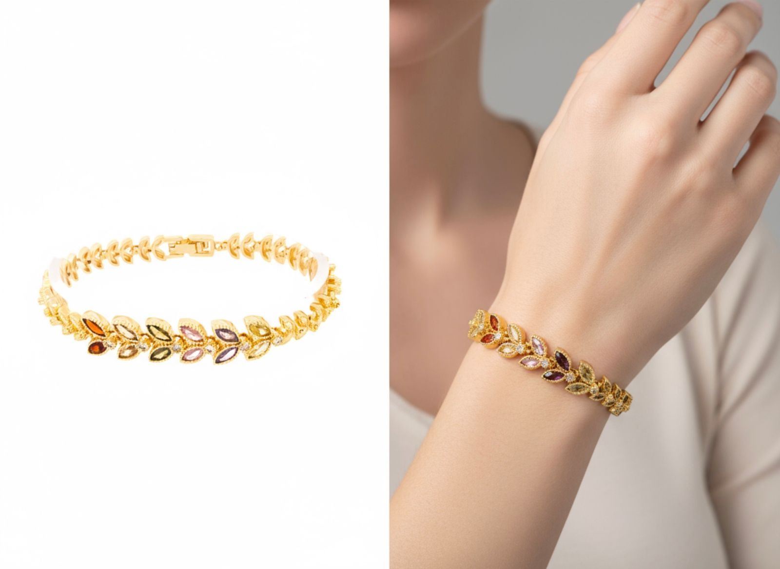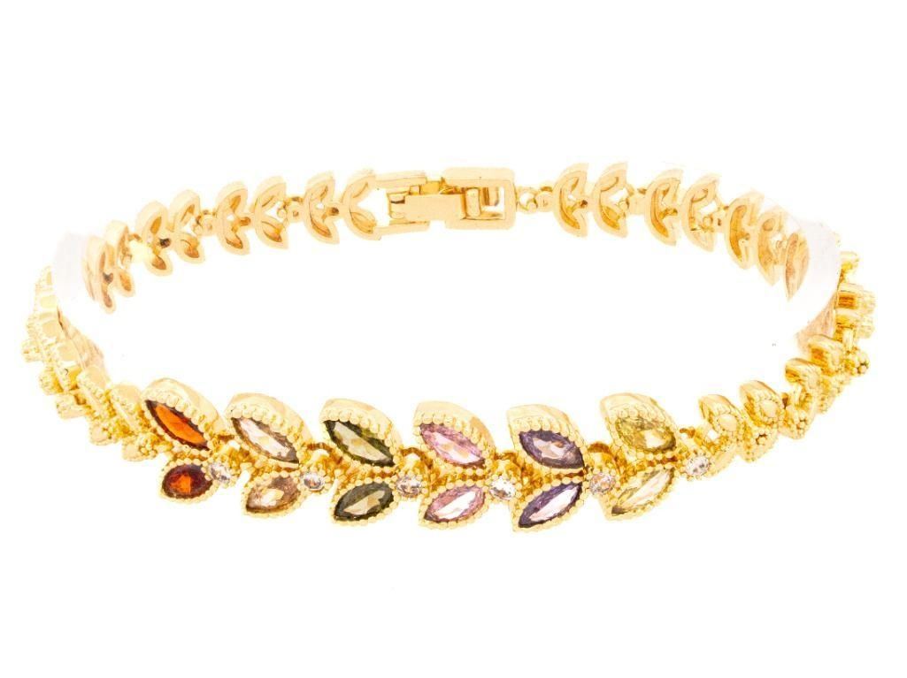 18kt Oro Laminado Fancy Leaf Style Bracelet w/Gemstones (20cm) Ð 2027