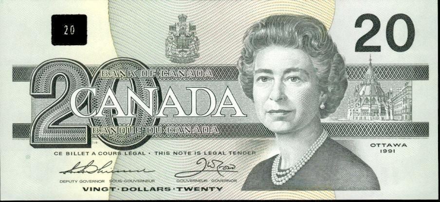 Lot 10 Canada 1991 Twenty Dollars UNC (EIX) Serifs