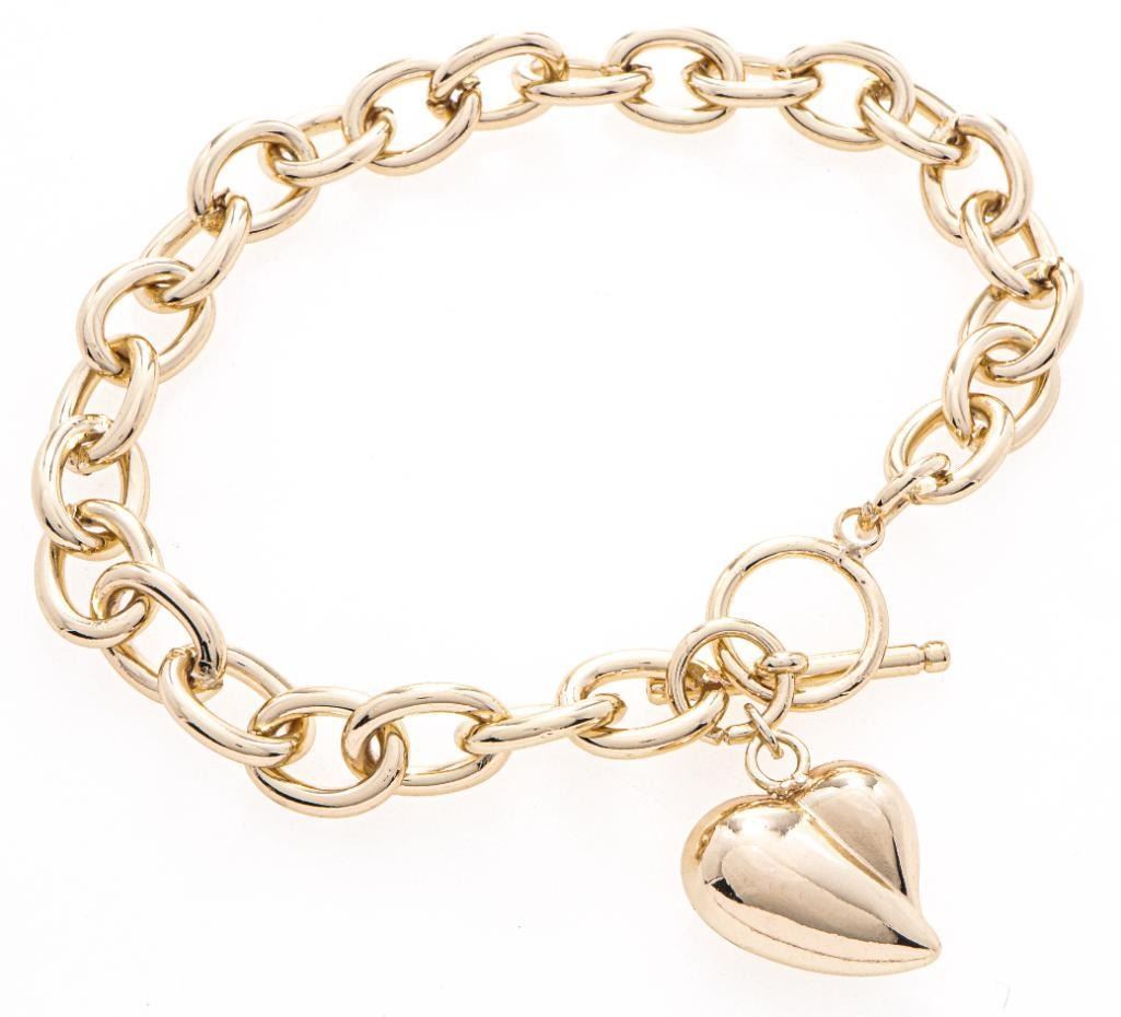 Lot 55 18kt BGO Rolo Link Bracelet w/ Puff Heart Tag 7.5"