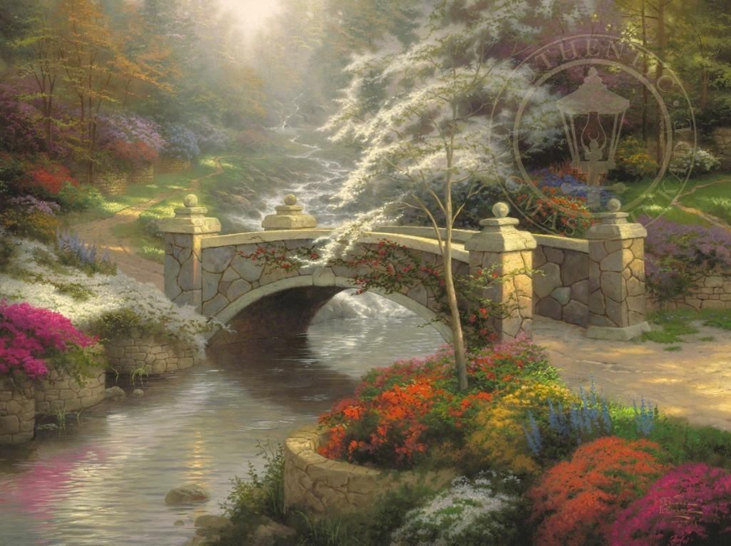 Thomas Kinkade (1958-2012) , BRIDGE OF HOPE , Fine Art Print 44x34" Ð 1002807