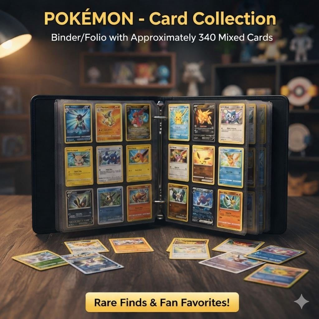 Discover an exciting PokŽmon collection featuring approximately 340 cards, offering a dynamic mix for collectors and enthusiasts alike. This assortment may include a variety of eras, card types, and artwork, making it a great opportunity to explore the depth and evolution of the PokŽmon trading card universe.