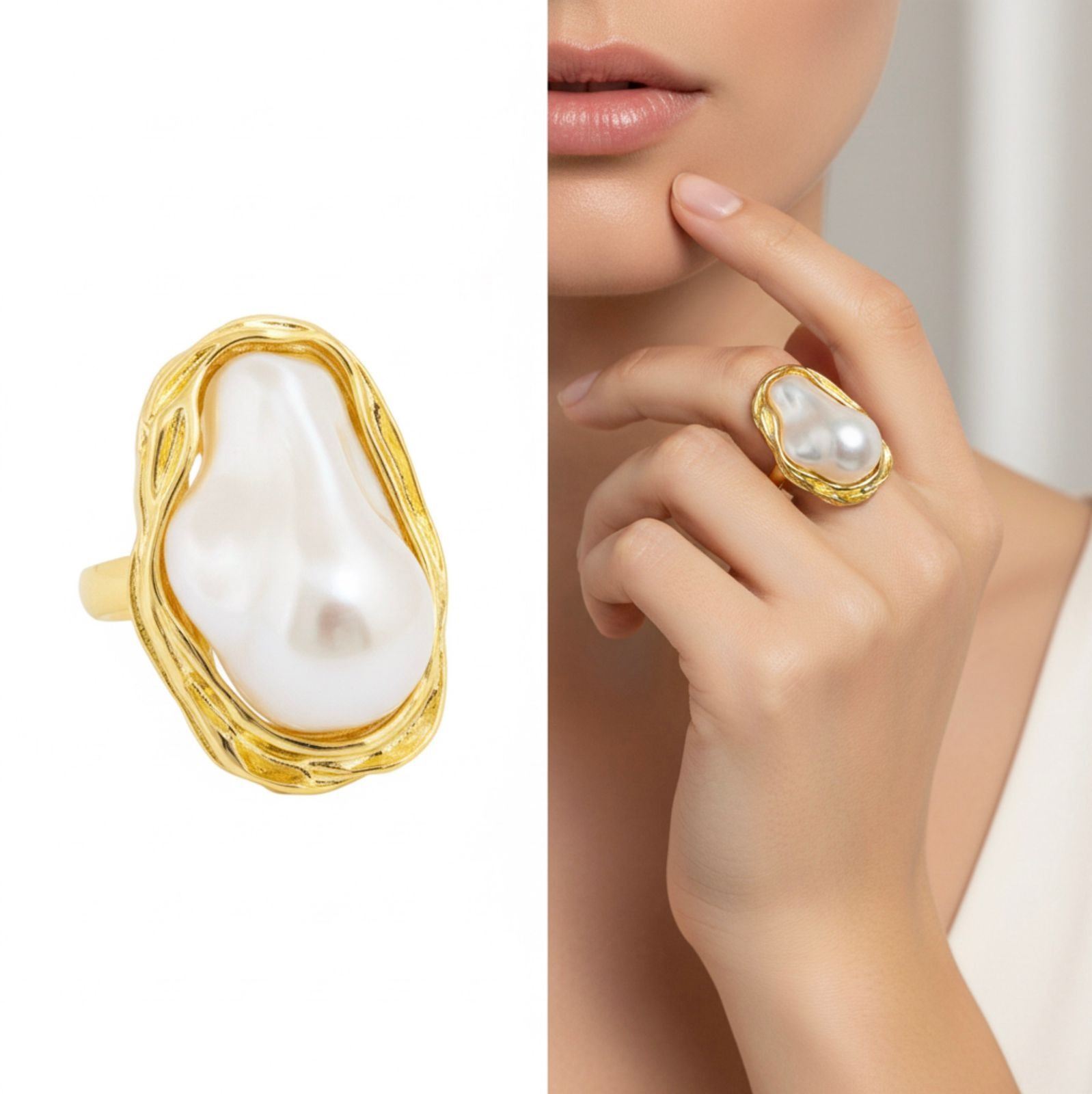 18kt Oro Laminado Ring,Mabe Pearl Style Abstract Ð 1594
