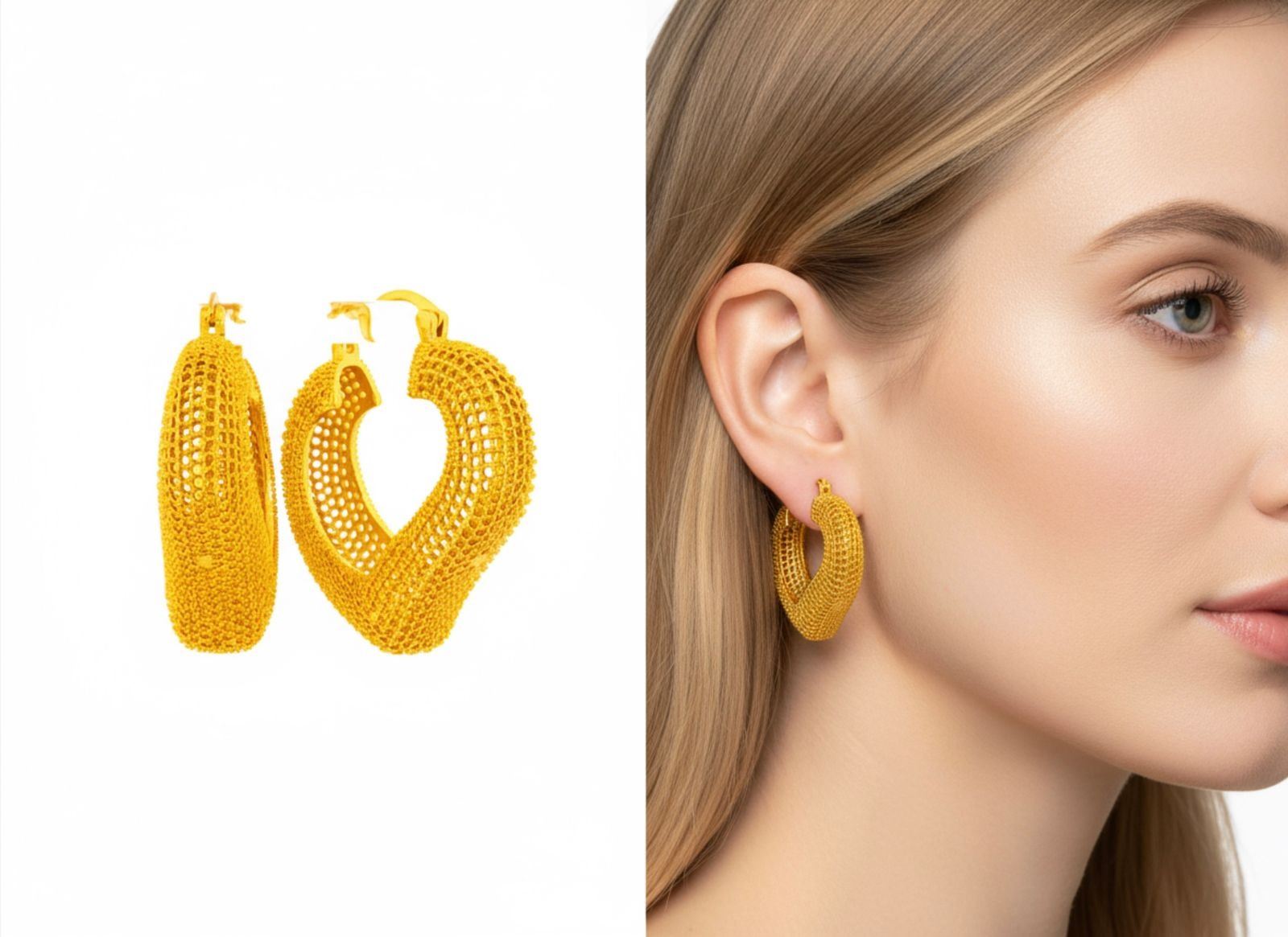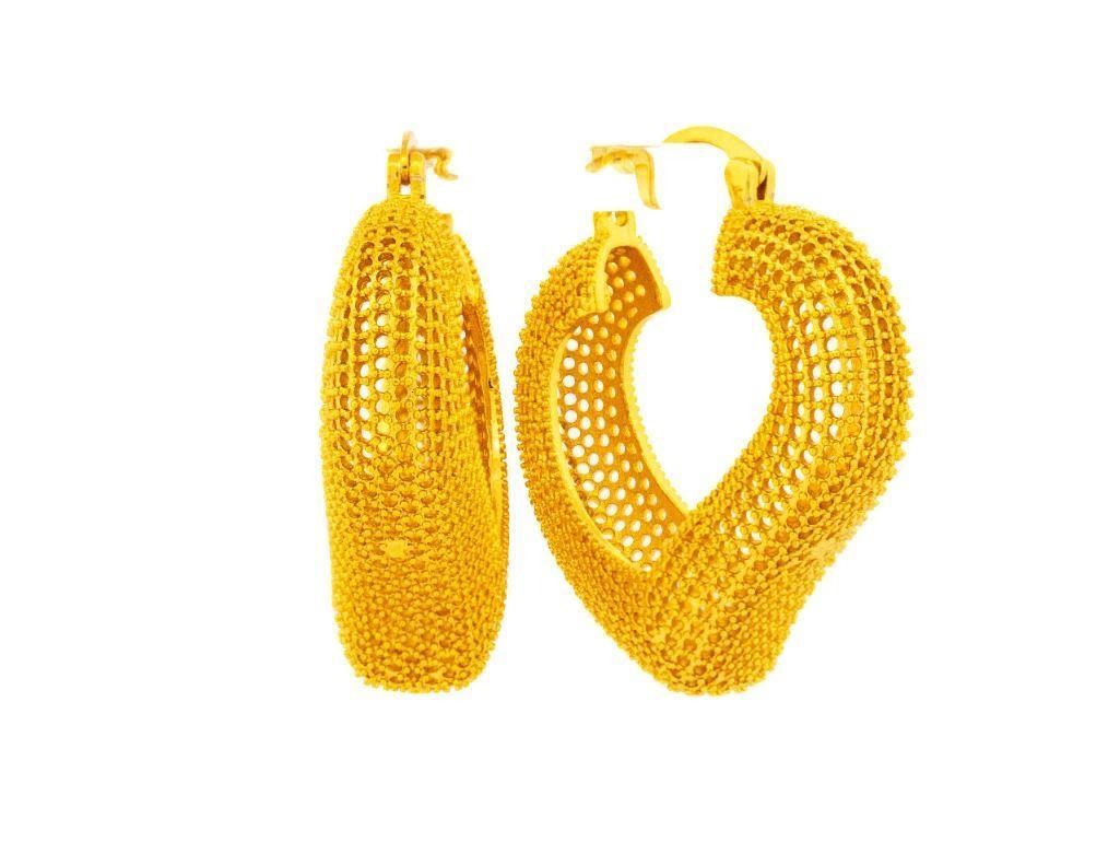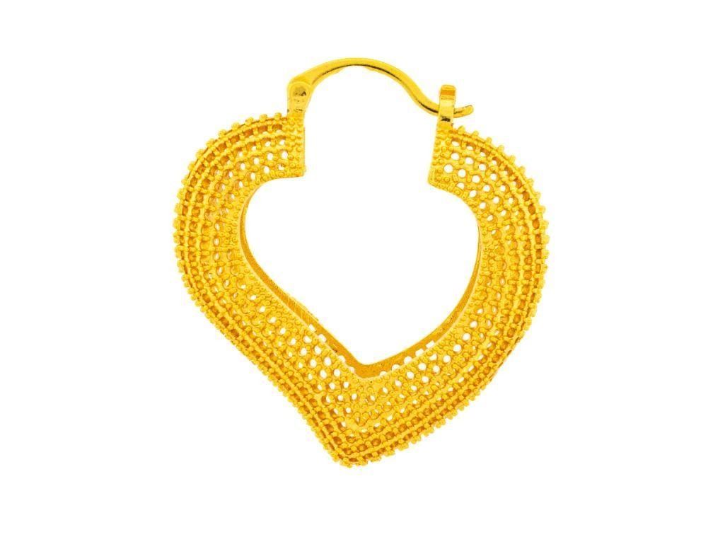Bold and elegant heart-shaped earrings in radiant 24kt Dubai Gold Overlay, showcasing a high-polish finish and timeless romantic design. Lightweight with strong visual presence, delivering the luxurious look of gold at exceptional value. Ð 1597