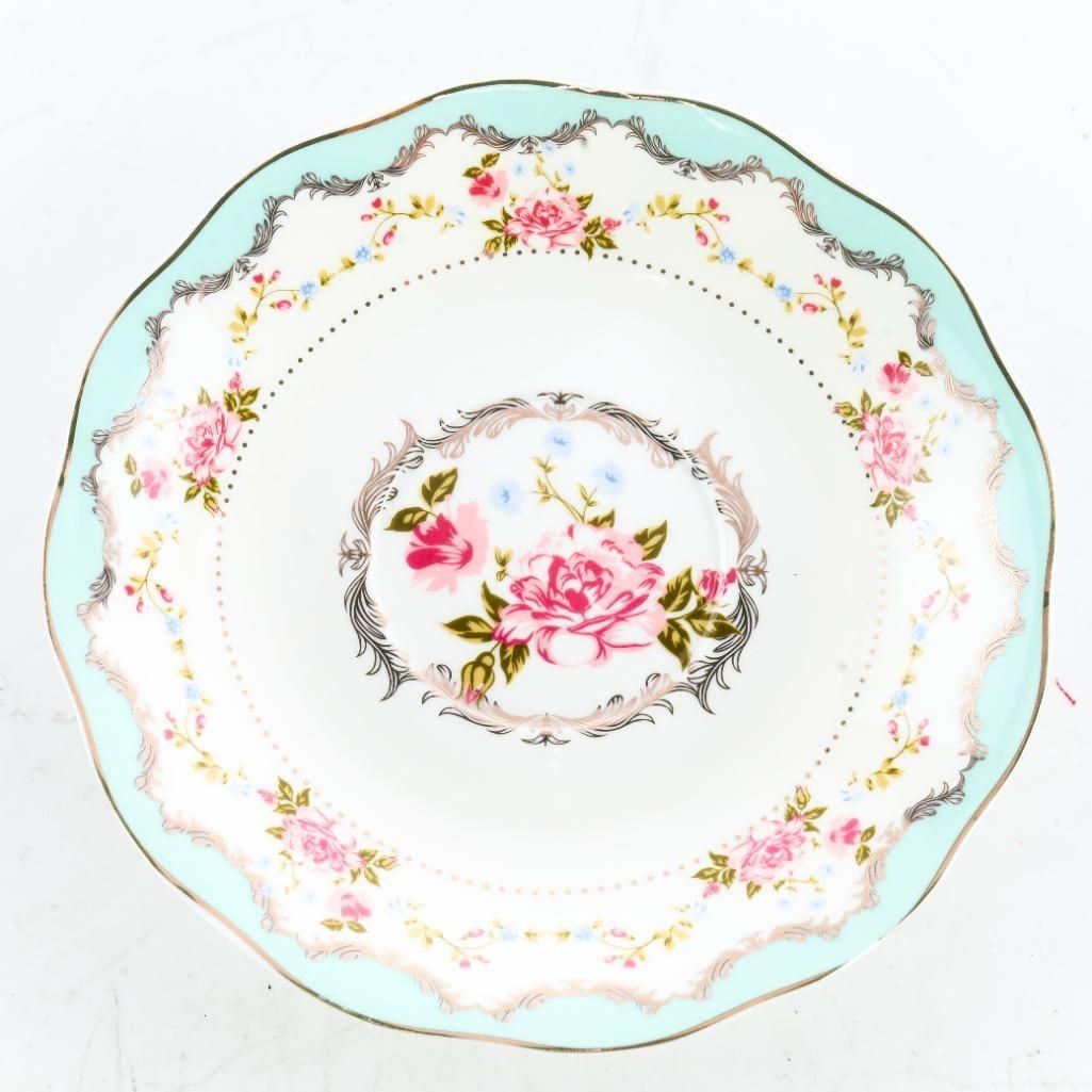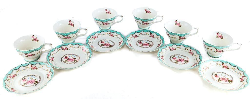 Lot 102 Vintage Floral Tea Cup & Saucer Set (Turquoise Pol