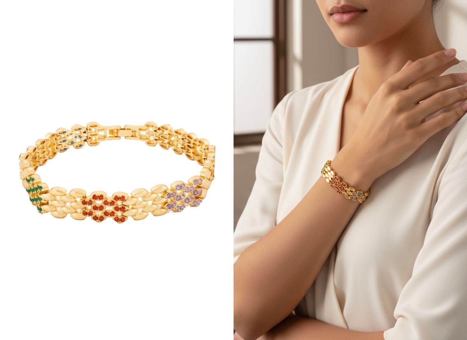 18kt Oro Laminado Bracelet, Nicro Pave Set Gemstones, Panther Link Ð 1466