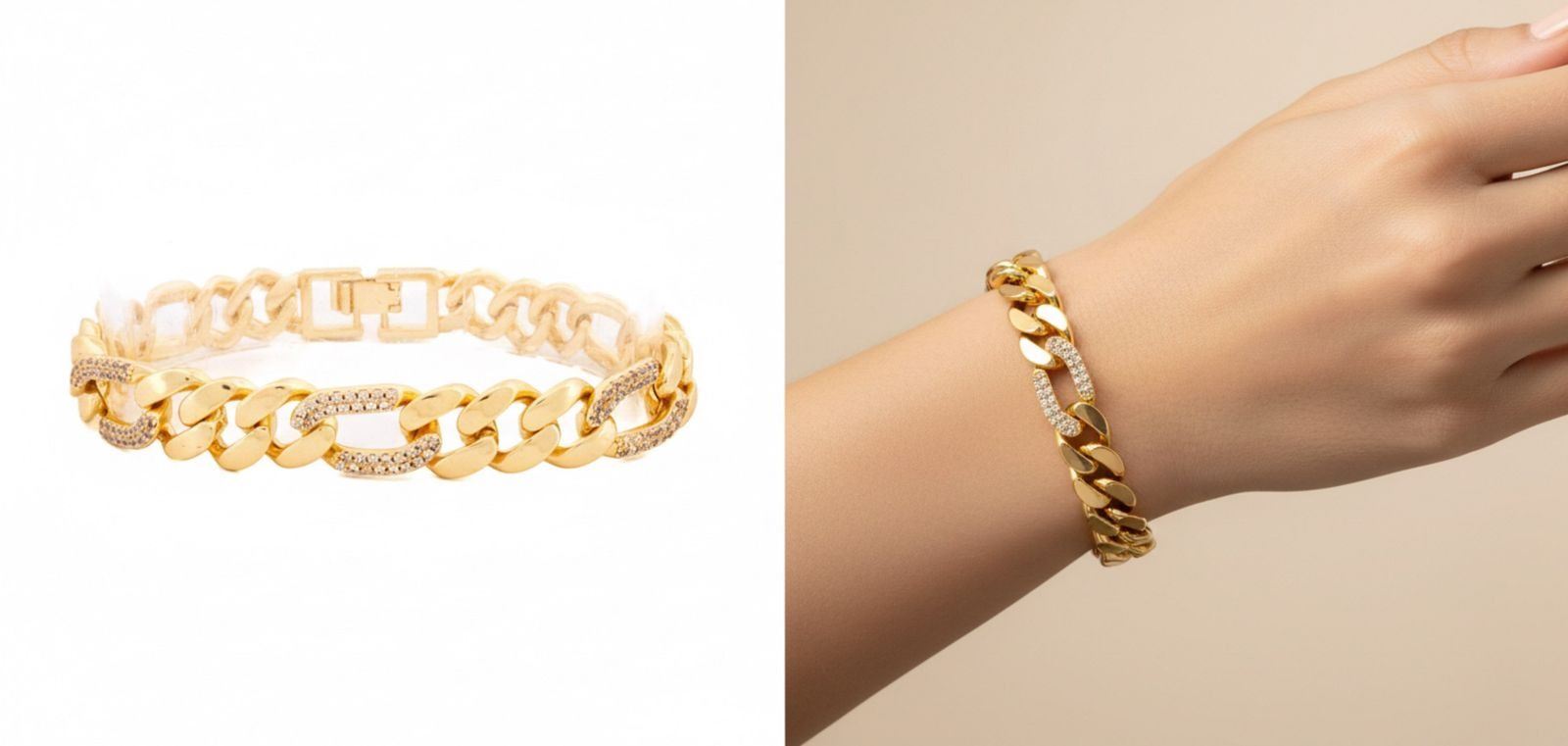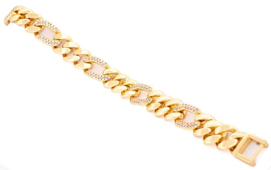 18kt Oro Laminado Figaro Link Bracelet w/ Micro Pave Gemstones Ð A3002
