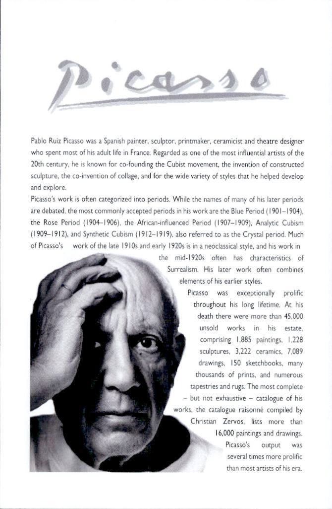 Created in 1949,Dove of Peace is one of PicassoÕs most iconic and universally recognized symbols,representing hope,unity,and peace through a single continuous line,the minimalist composition reflects PicassoÕs mastery of form and meaning,reduced to its purest expression,this Fine Art GiclŽe Print is produced with archival inks on museum-quality paper,ensuring exceptional clarity,longevity,and faithful reproduction of the original artwork. Ð AA5076