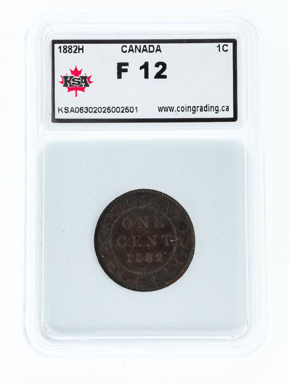 1882H Canada Victoria Large One Cent Coin F12 KSA Slab