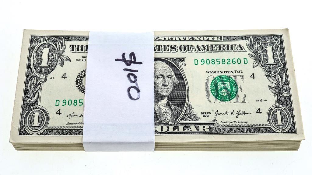 Lot 214 Lot - 100x One Dollar Federal Reserve Notes Gree