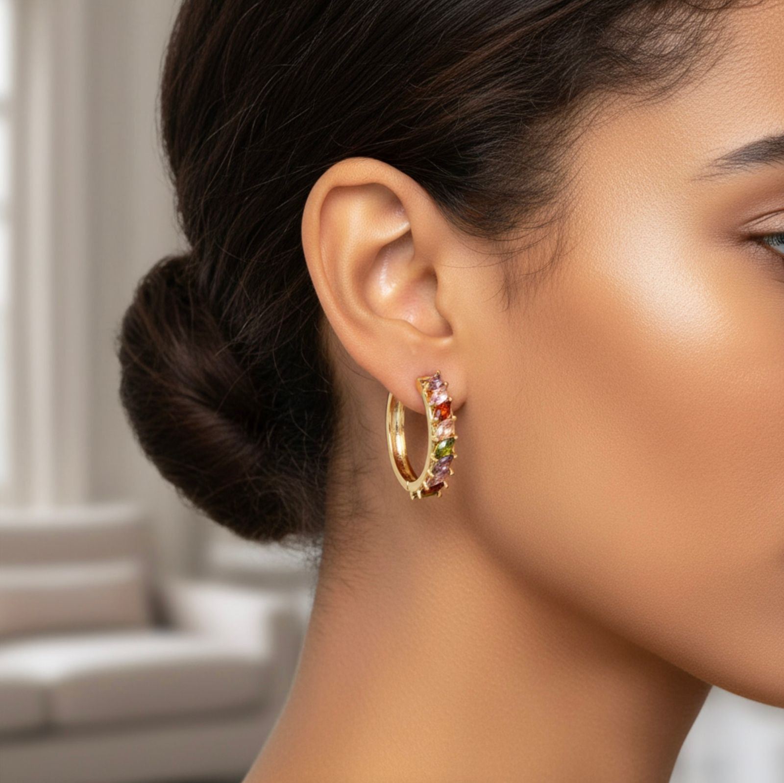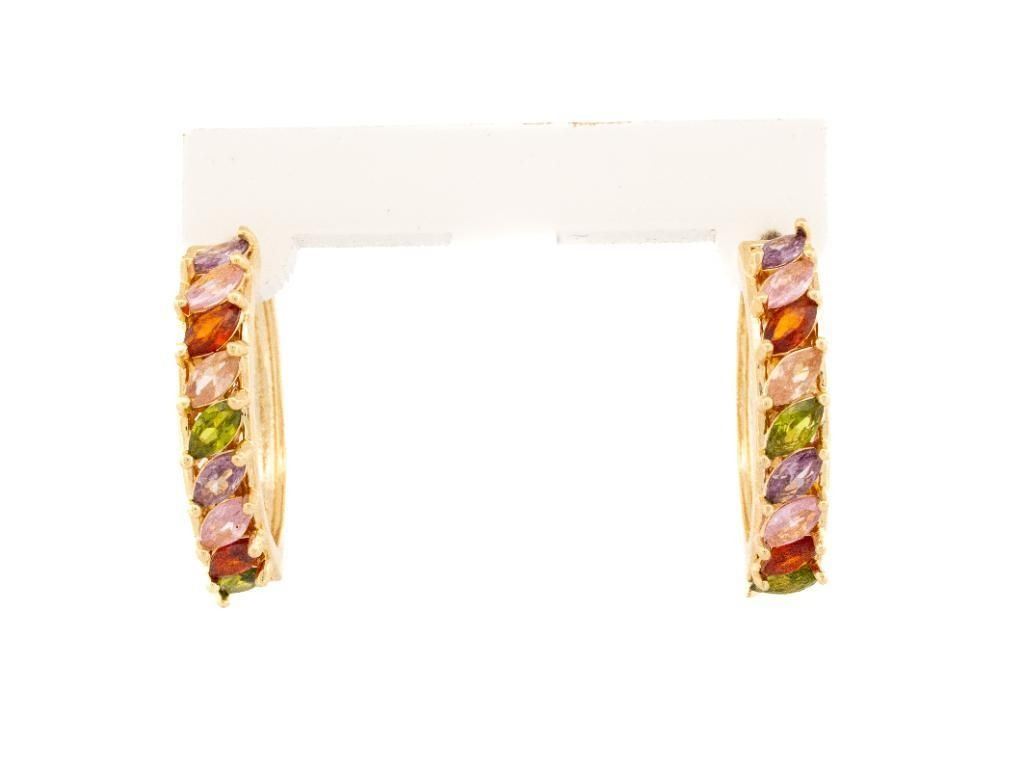18kt Oro Laminado Hoop Earrings, 9 Marquis Cut Colour Stone Gemstones Ð 1458