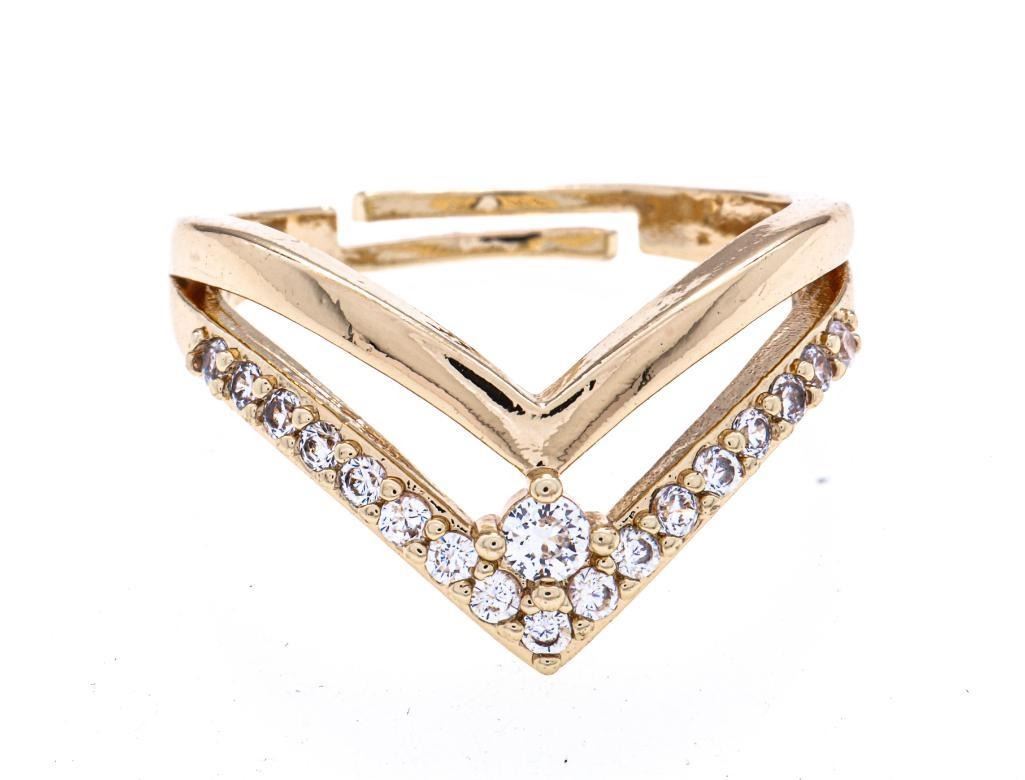 18kt Oro Laminado Double V Design w/ Gemstones - 830299 Ð DIGA-178