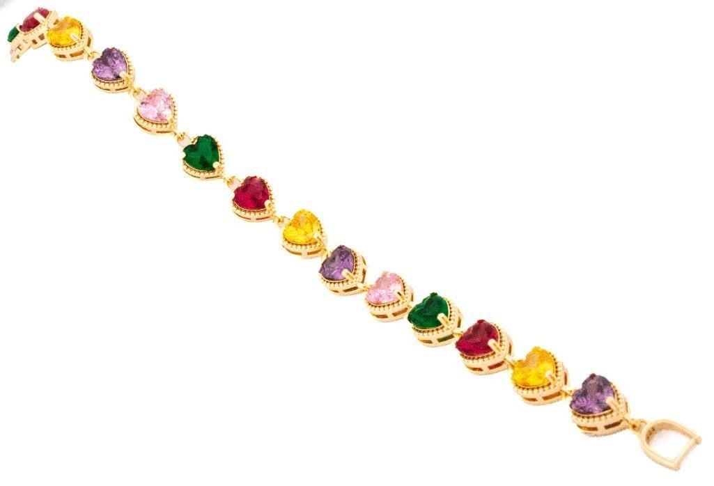 18kt Oro Laminado 15 Heart Cut Gemstone Bracelet Multi Colour Ð A3005