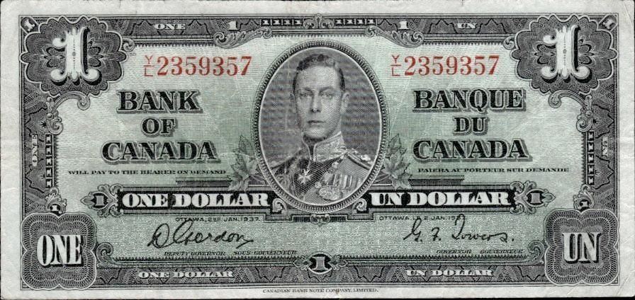 Bank of Canada 1937 One Dollar - 100 Ð NTE-574