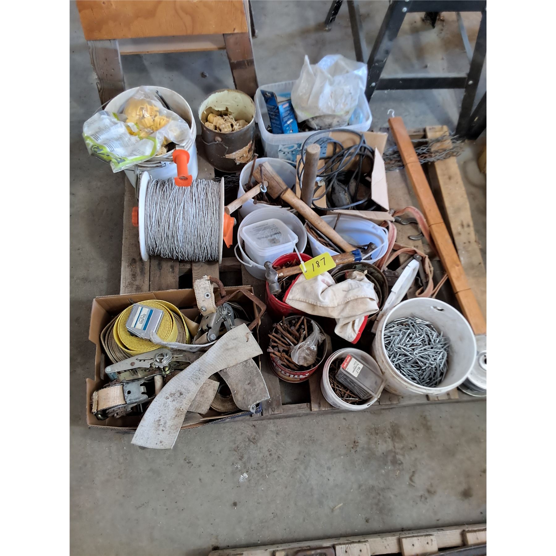 Lot 187 Tie Downs, Fencing Supplies, Misc.