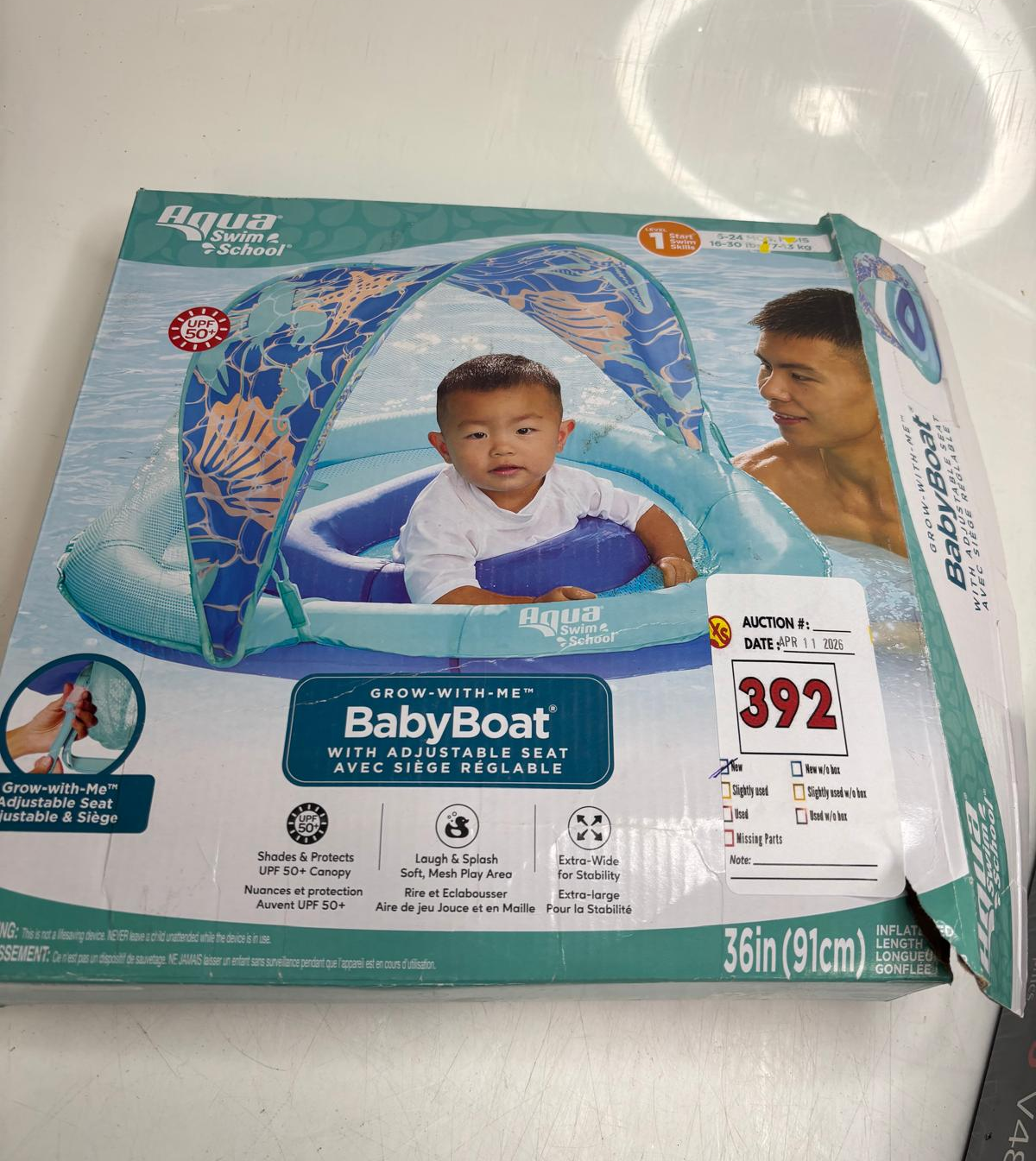 Lot 392 AQUA SWIMSCHOOL GROW-WITH-ME BABY BOAT WITH ADJUSTABLE SEAT POOL FLOAT -N