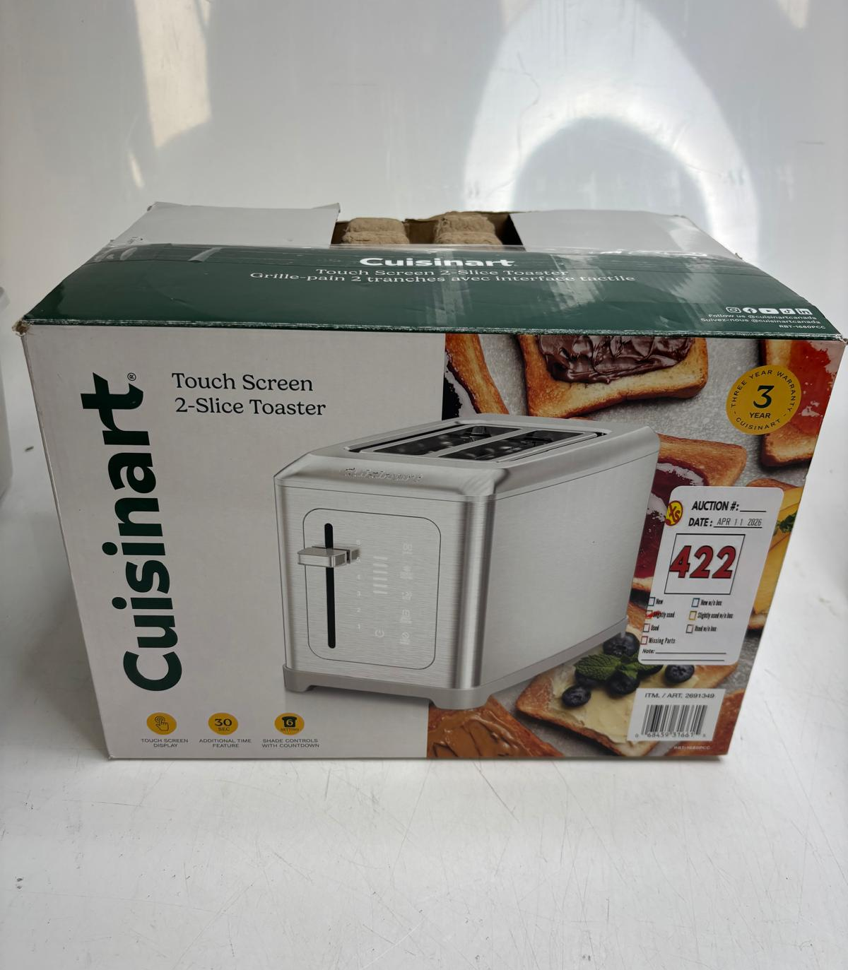 Lot 422 CUISINART 2 SLICE STAINLESS TOUCH SCREEN DIGITAL TOASTER -SU