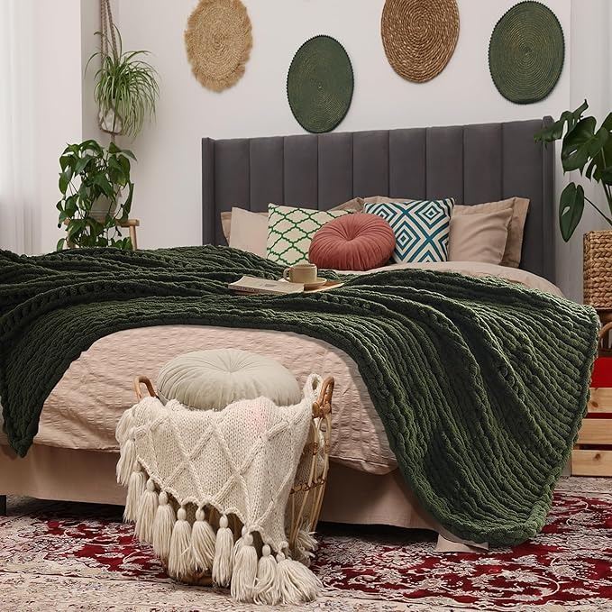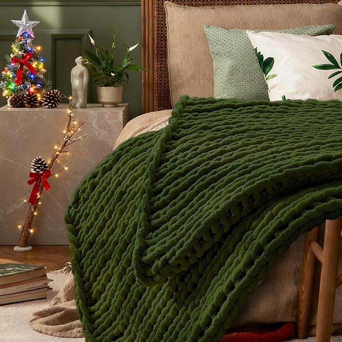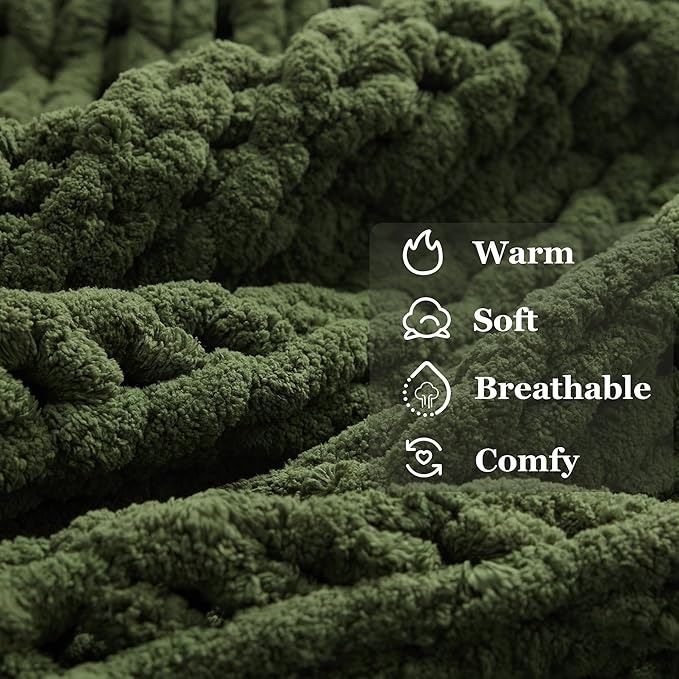 - Green Throw Blanket, 50" x 60" Chunky Knit Blanket, Handmade Warm & Soft Chenille Throw Blanket, Washable Decorative Knit Blanket with Jumbo Chenille Yarn for Couch Bed Sofa