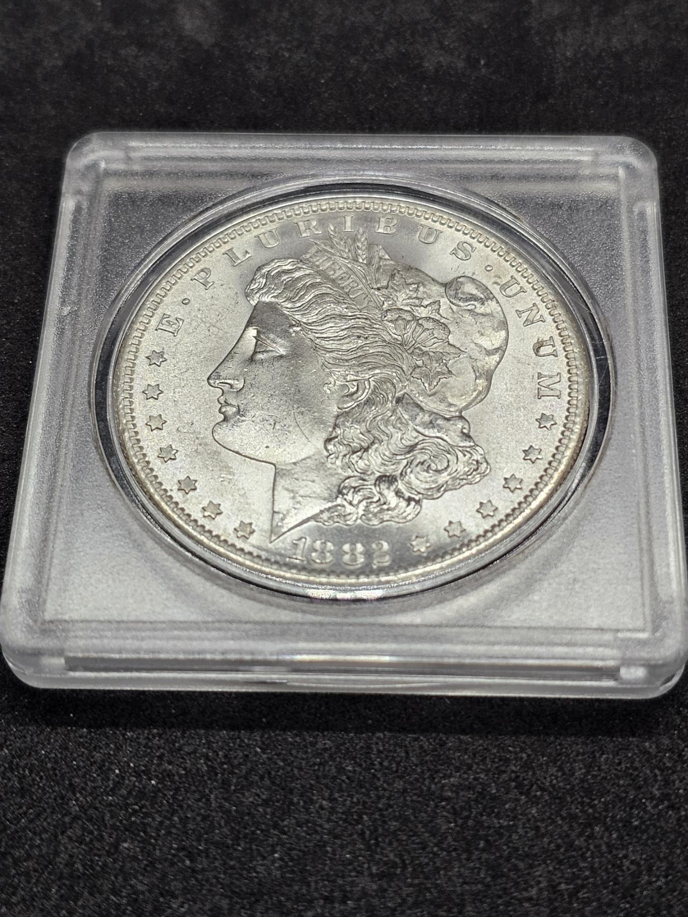 Lot 71 1882-S Morgan 90% Silver Dollar with Protective Case