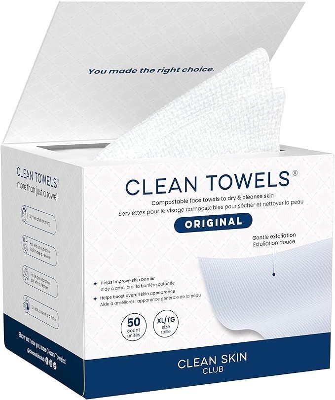 - Clean Skin Club Clean Towels XL, 100% USDA Biobased Face Towel, Disposable Face Towelette, Eczema Association Accepted, Makeup Remover Dry Wipes, Ultra Soft, 1 Pack, 50 Count