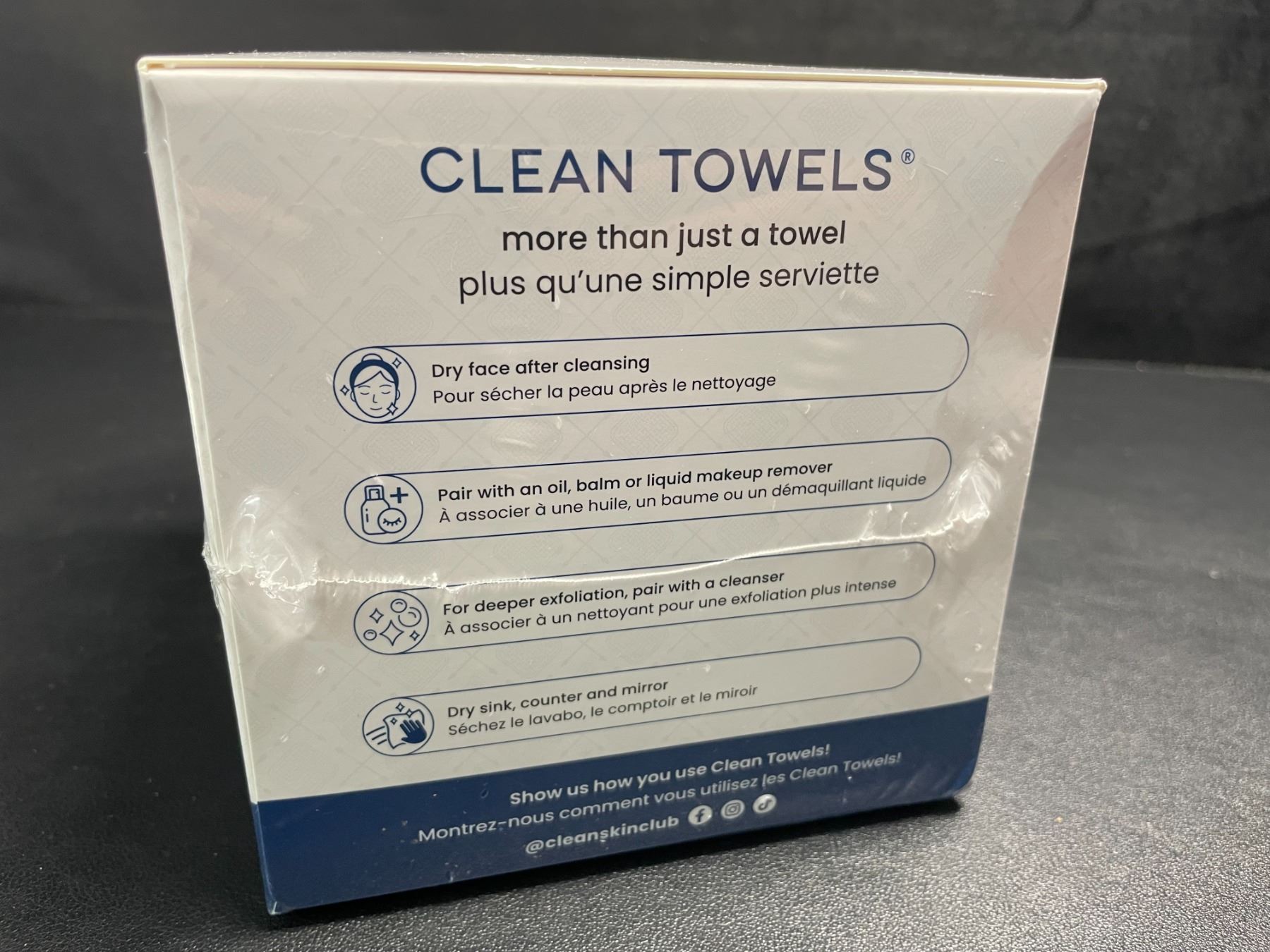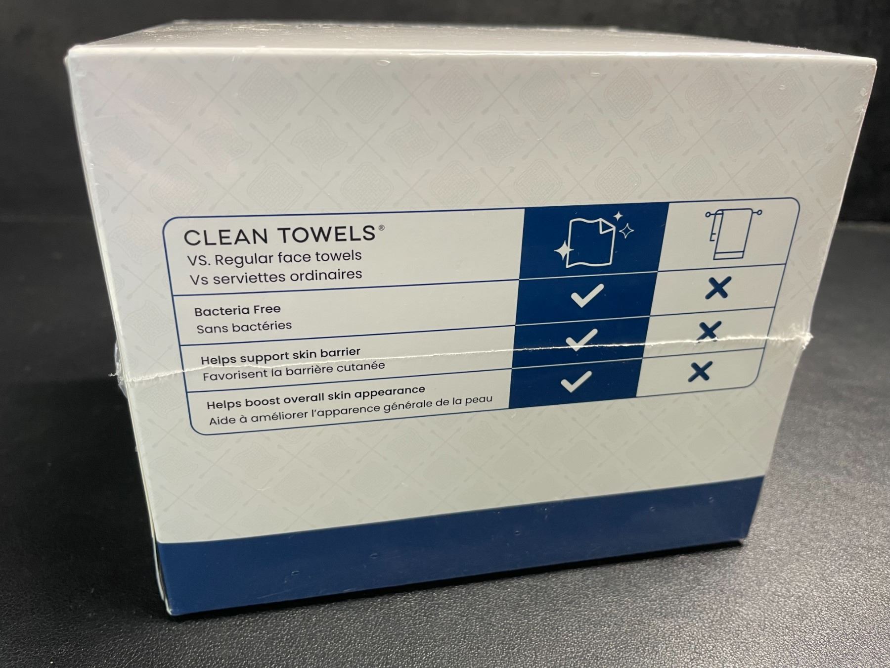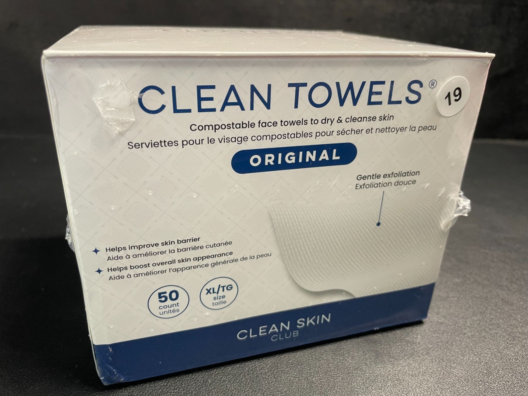 Lot 19 50PC Box of XL Clean Towels; Dermatologist-Approved Compostable Face Towels - Ultra Soft - New