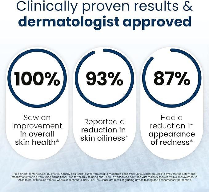 - 50 Single-use, dry facial towels that are dermatologist tested and approved.