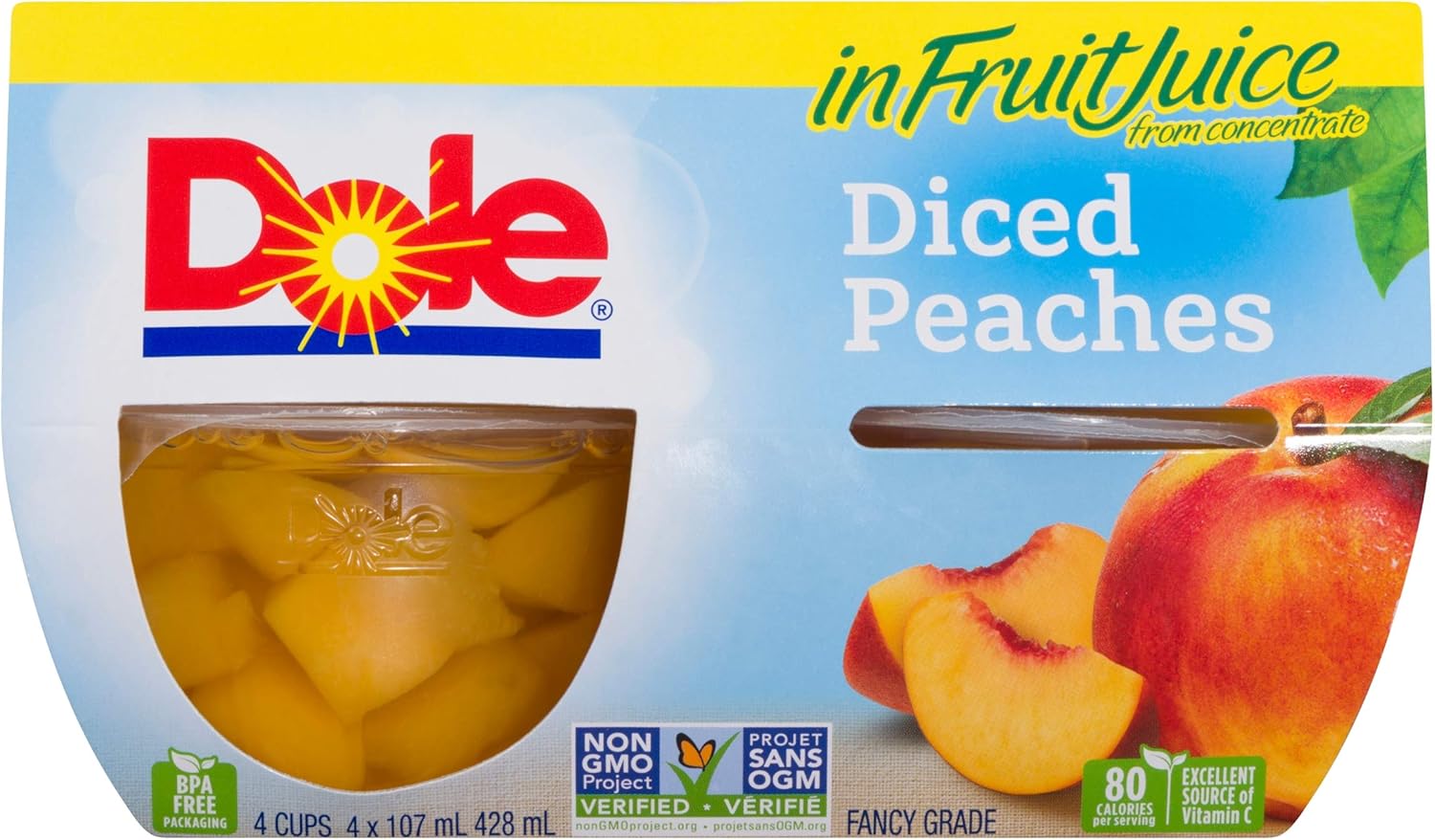 Lot 495 Dole Fruit Bowls Diced Peaches In Fruit Juice, Healthy Snack, 107 ml (20 cups)