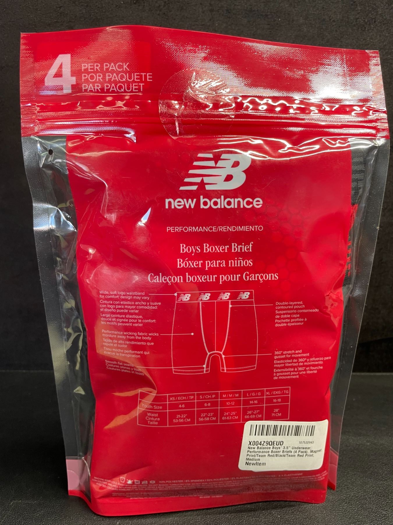 Lot 34 4-Pack of New Balance Performance Boys Boxer Briefs (Size M) Lightweight/Breathable - New