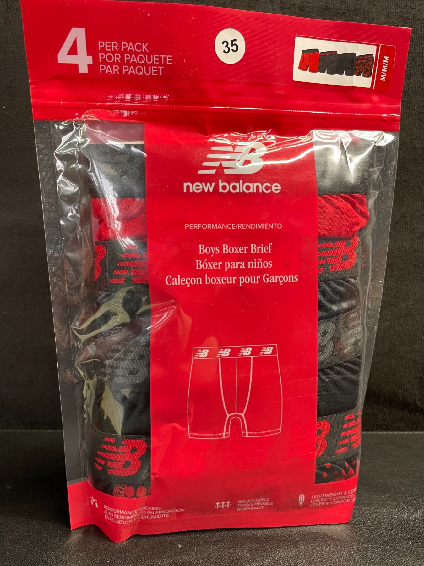 Lot 35 4-Pack of New Balance Performance Boys Boxer Briefs (Size M) Lightweight/Breathable - New