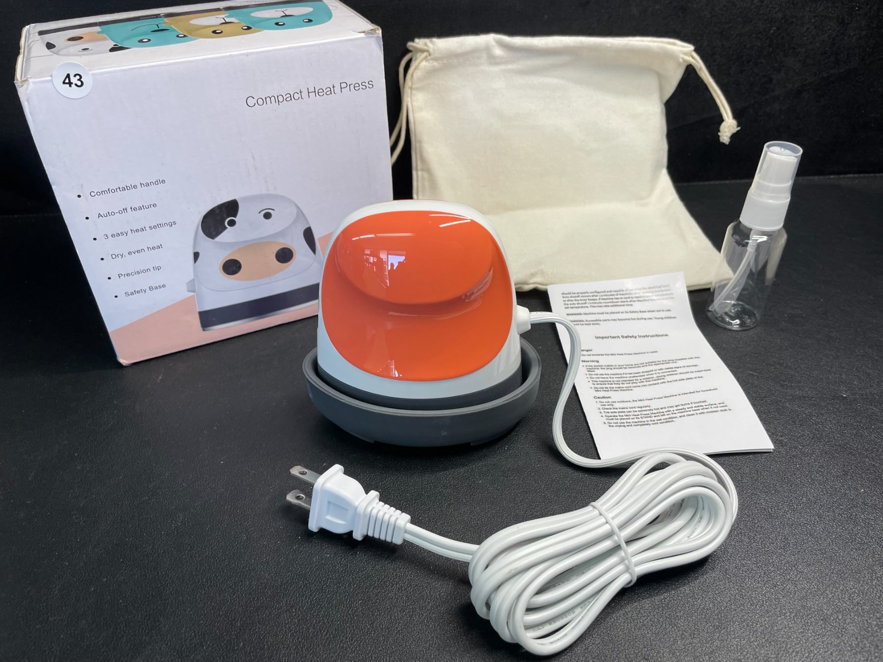 Lot 43 Mini Heat Press Machine for HTV/Cricut Projects; Small Iron-On Press for Heat Transfer Crafts - New!