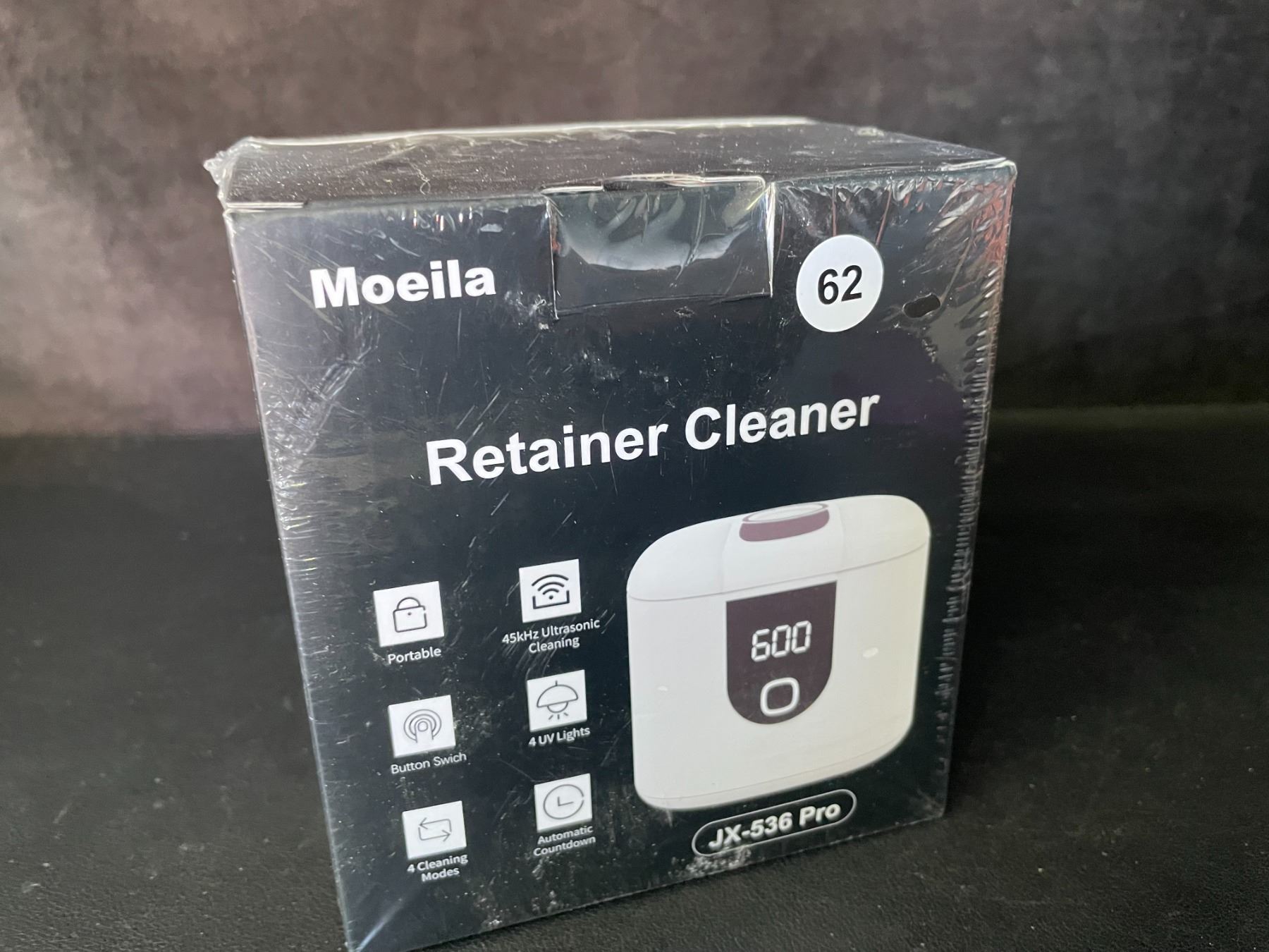 - Ultrasonic Retainer Cleaner Machine, Upgraded 45kHz Ultrasonic Cleaner for Mouth Guard Braces, Night Guards, Toothbrush Heads & Jewlery with 200ML, 4 Modes and Digital Timer Dental Cleaning Pod (White)