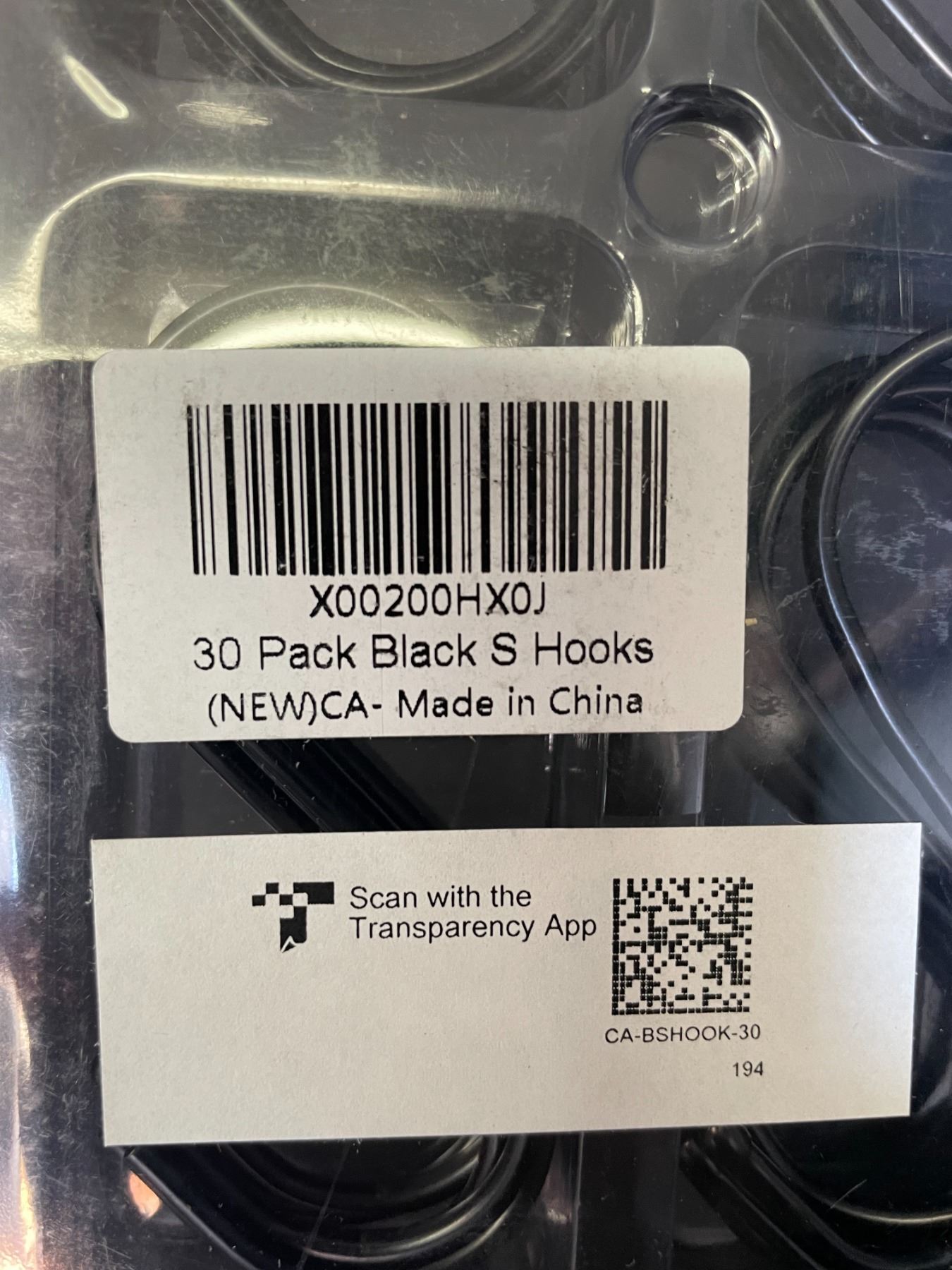 Lot 68 2 Packs (30PCS Each) Black S Hooks (3.3") Large S Hanging Hooks; Versatile/Multipurpose Hooks - New