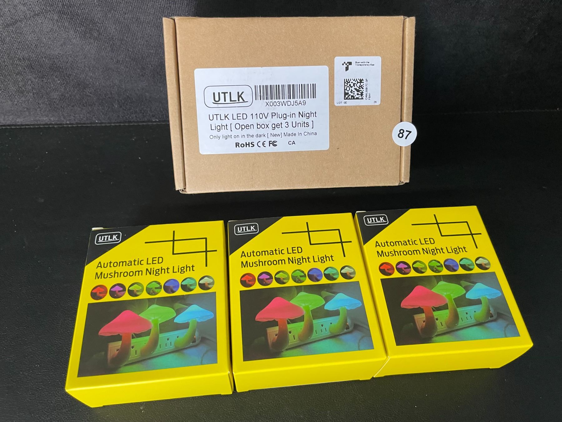 Lot 87 3-Pack LED Color-Changing Mushroom Plug-In Night Lights w/ Dusk to Dawn Sensor; 7-Colors - New