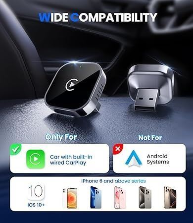 - Teeran Wireless Apple CarPlay Adapter, 2025 Upgrade, Mini USB Design for Cars, Seamless Use Fast Stable Connection Built-in Car Play Dongle for iPhone