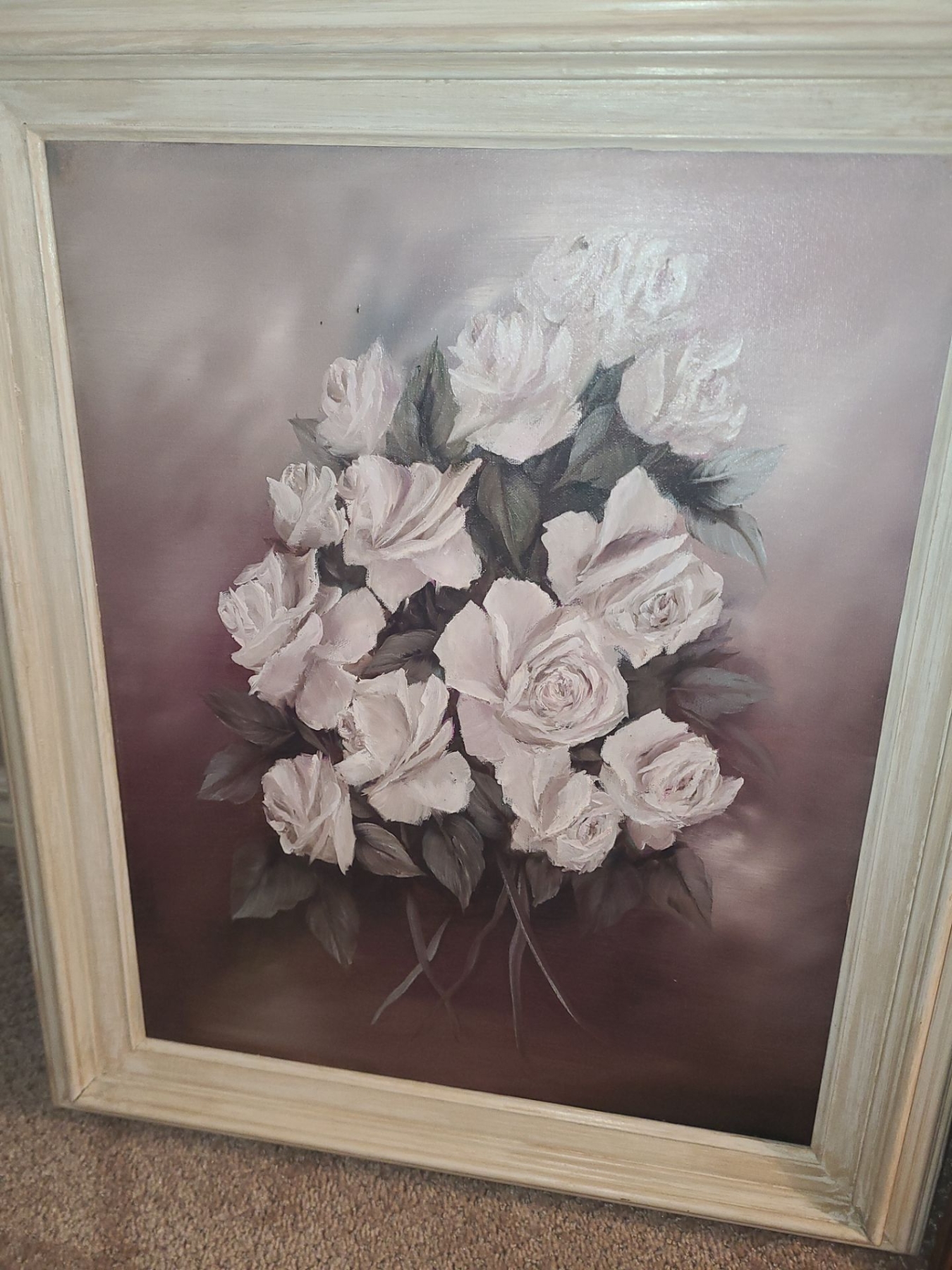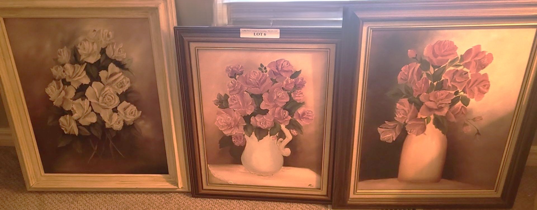 Lot 6 Trio of Rose Paintings. White Frame 21 1/2 w 25 1/2 h