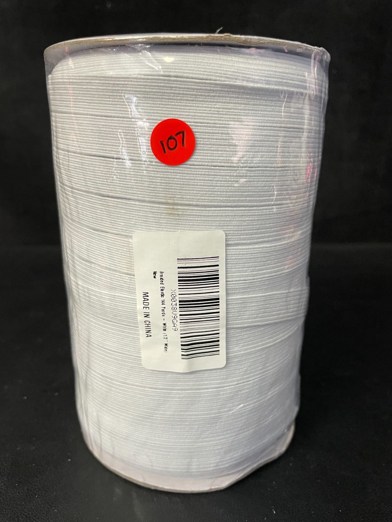 Lot 107 Braided Elastic Band Spool (144 Yards) White - 1/2" Wide - New