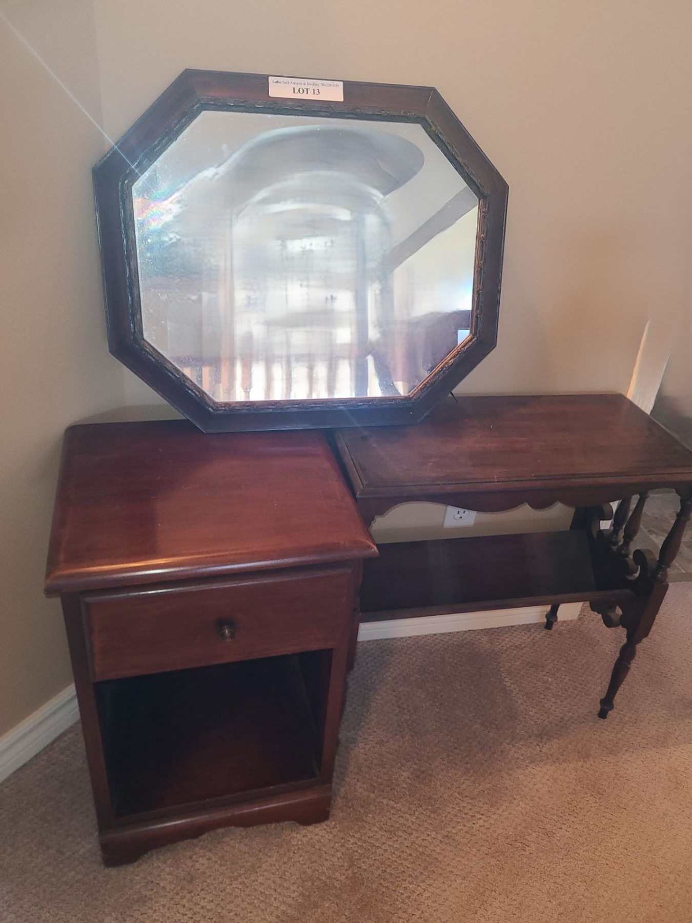 Lot 13 Night Stand w Drawer, Magazine Table 24 w 23 h Mirror 23 1/2 w 19 1/2 h