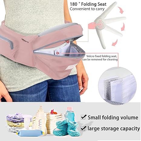 Lot 113 Foldable Baby Hip Carrier/Wearable Baby Hip Seat Carrier with Front Pocket (Pink) - New in Box