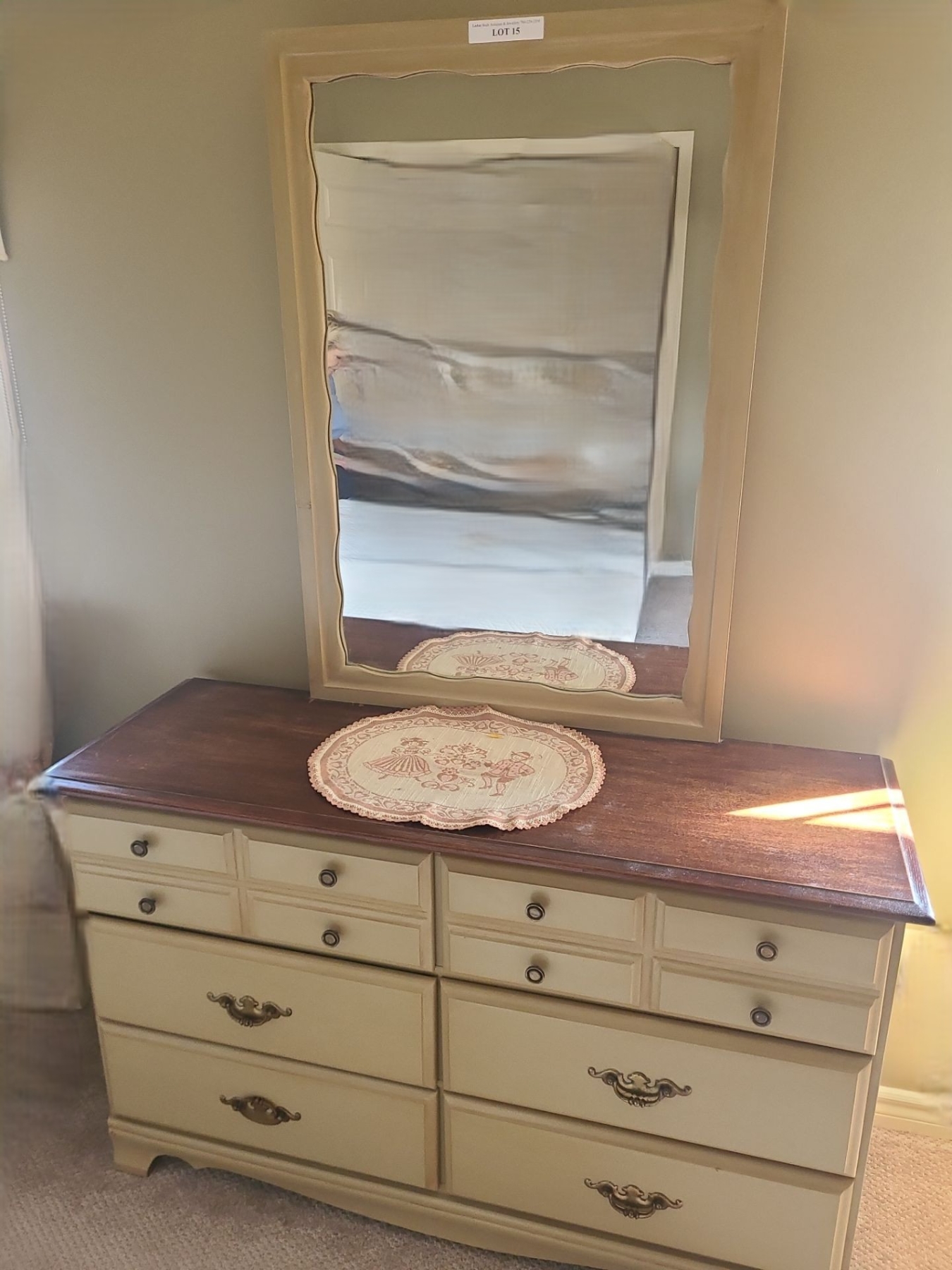 Lot 15 Wood Dresser w Attahed Mirror 49 w 70 h