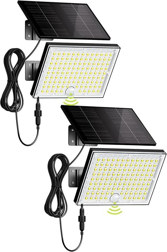 - JACKYLED Motion Sensor Solar Lights Outdoor with 113 Bright LEDs, Dusk to Dawn Outside Flood Lights with 16ft Cable, Waterproof Solar Powered Security Spot Lights for Garden Barn Porch Garage, 2 Pack