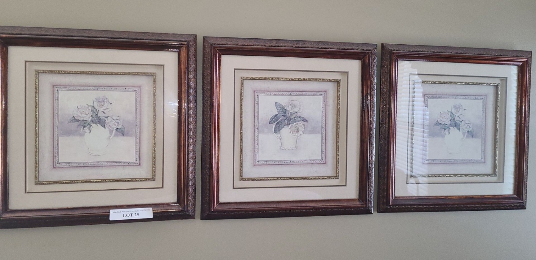Lot 25 Trio of Floral Prints 19 w 19 h