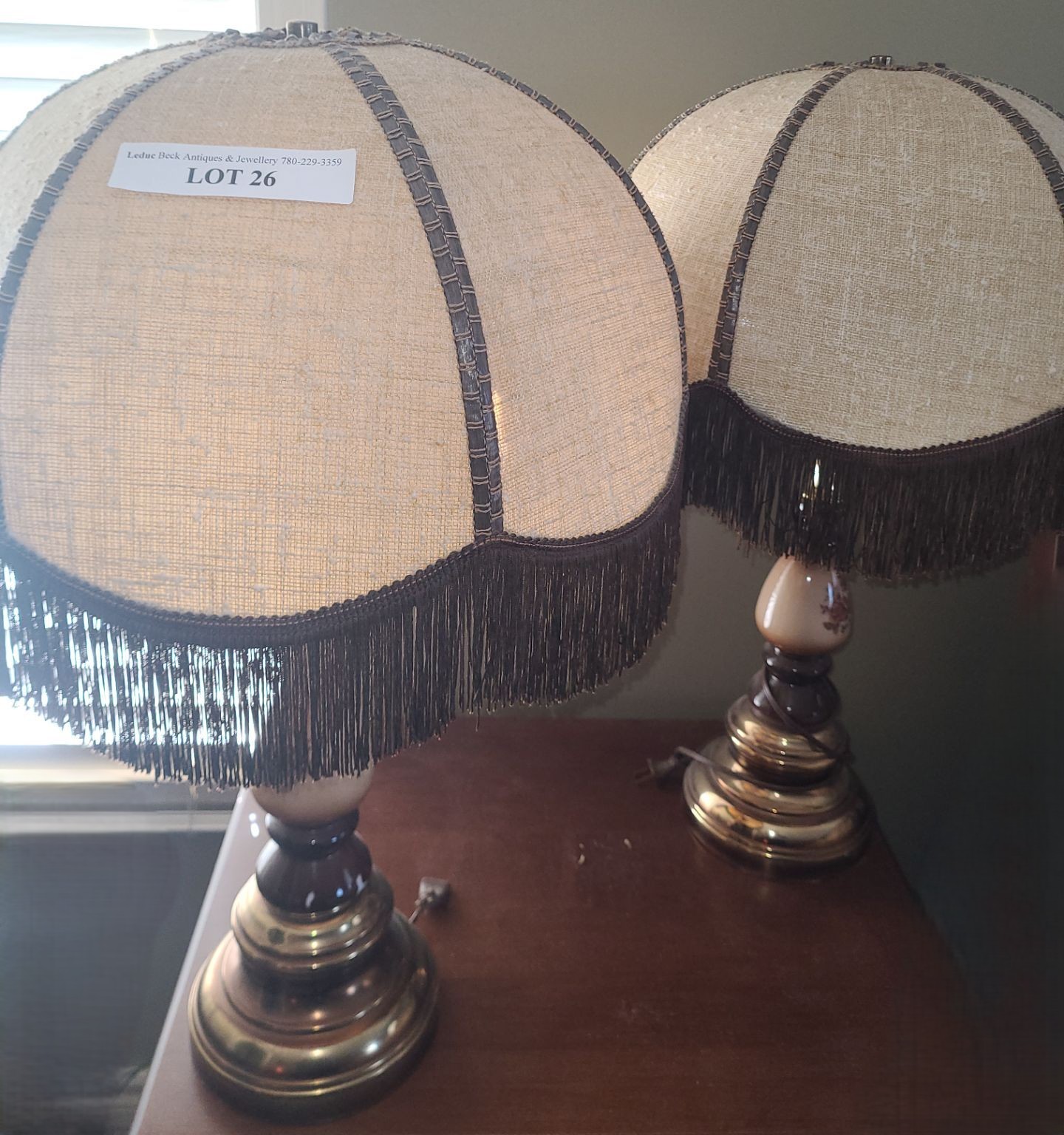 Lot 26 Pair of Vintage Floral Fringe Lamps 27 h