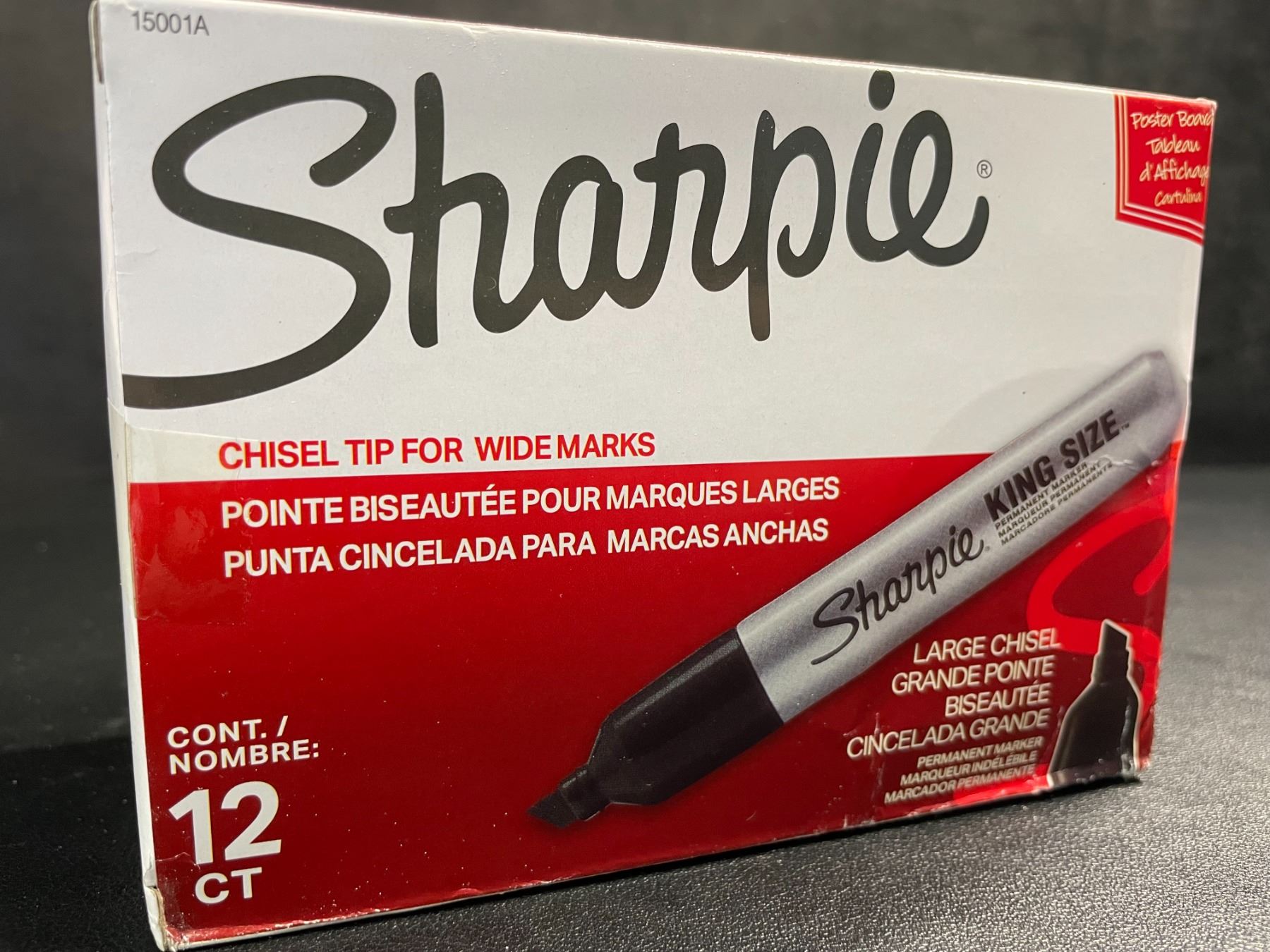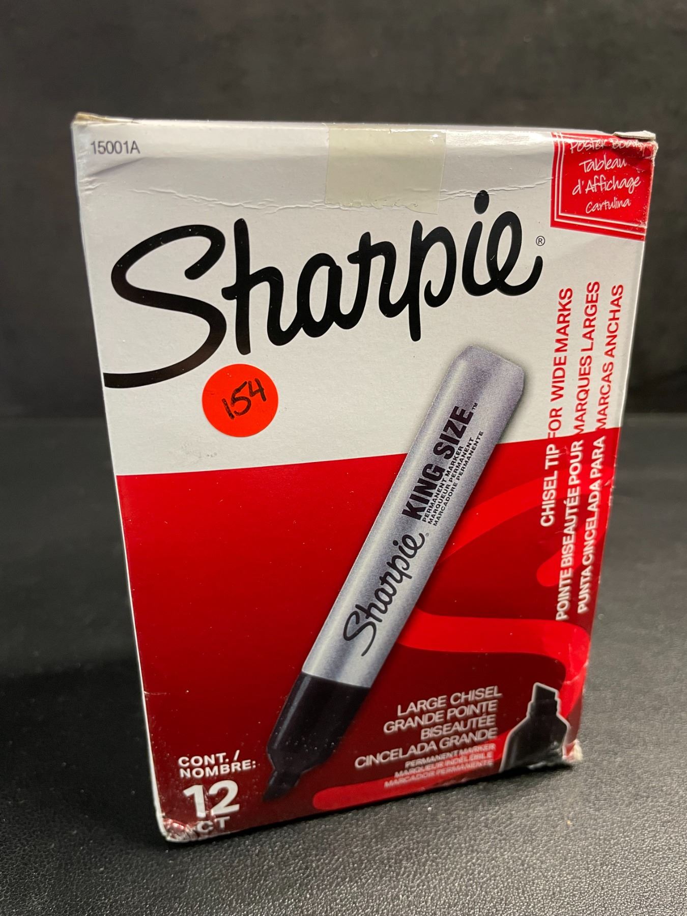 Lot 154 12-Pack Sharpie King-Size Permanent Markers; Large Chisel Tip Sharpies for Wide Marks (Black) - New