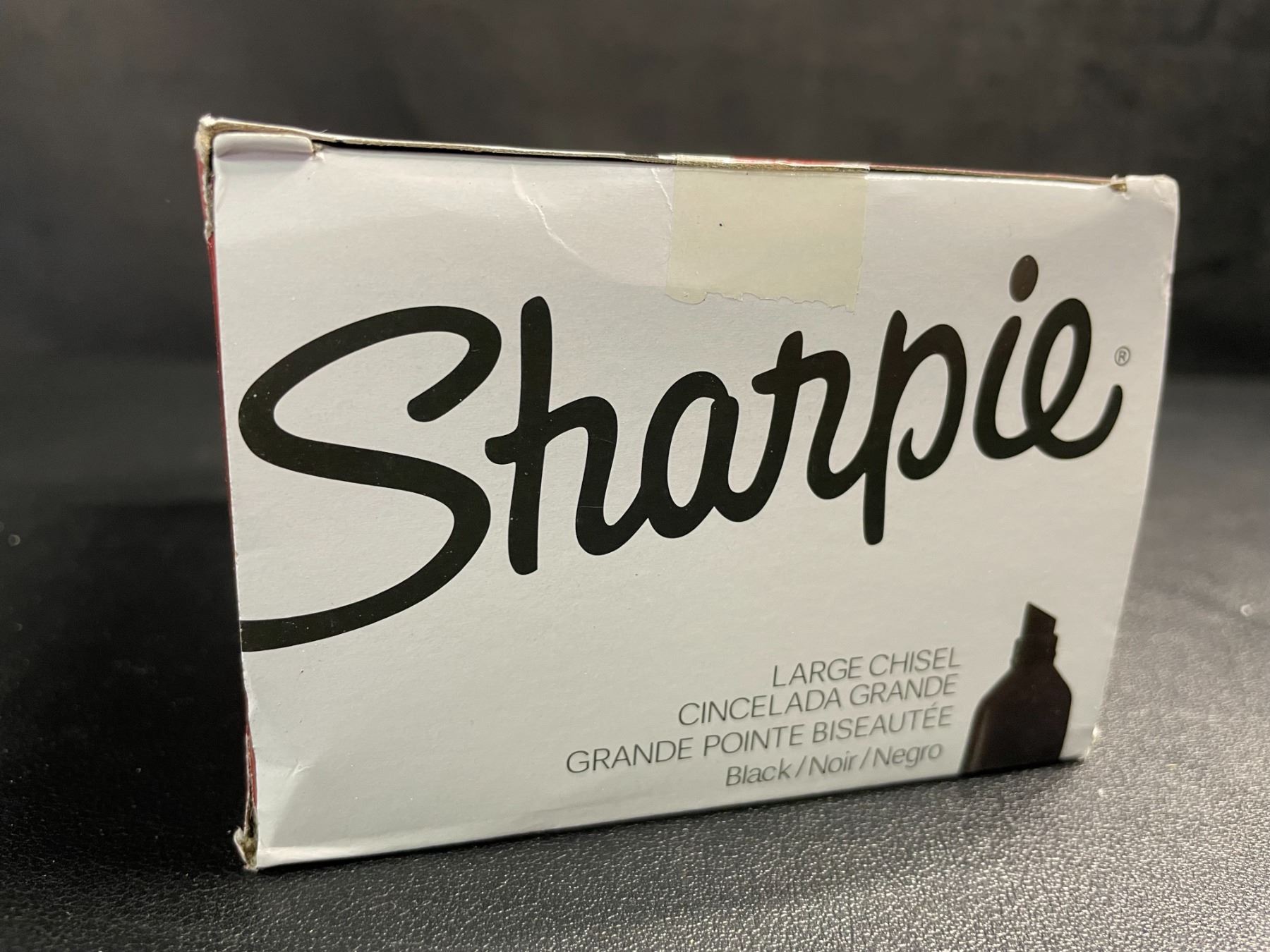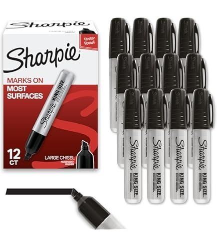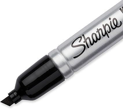 - Sharpie Chisel Tip Permanent Markers; Proudly Permanent Ink Marks On Paper, Plastic, Metal, and Most Other Surfaces; Remarkably Resilient Ink Dries Quickly and Resists; Black; Pack of 12