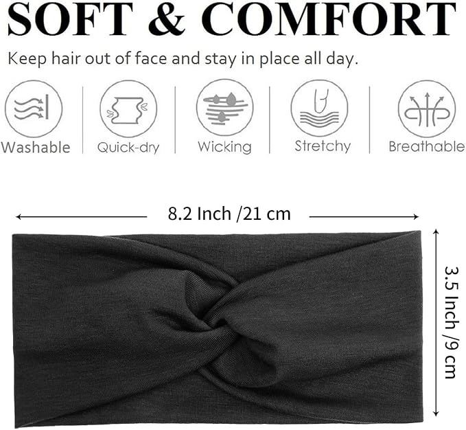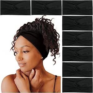 - Tobeffect Headbands for Women Non Slip Turban Headband Boho Wide Head Band Womens Hair Wraps Accessories for Teen Girls 8 Pack Solid Colors (Black)